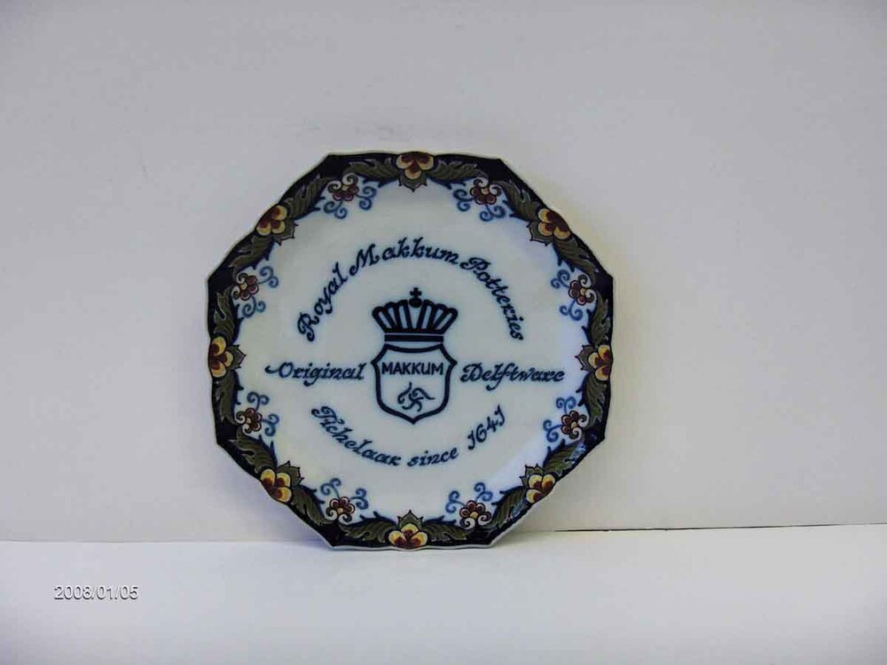 Gelegenheidsopdracht, promotiebord. Bord, achtkant, achtdelige gekleurde rand, bedrijfsembleem en opschrift
