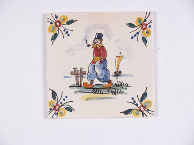 Tegel met polychroom decor van een volendammer visser