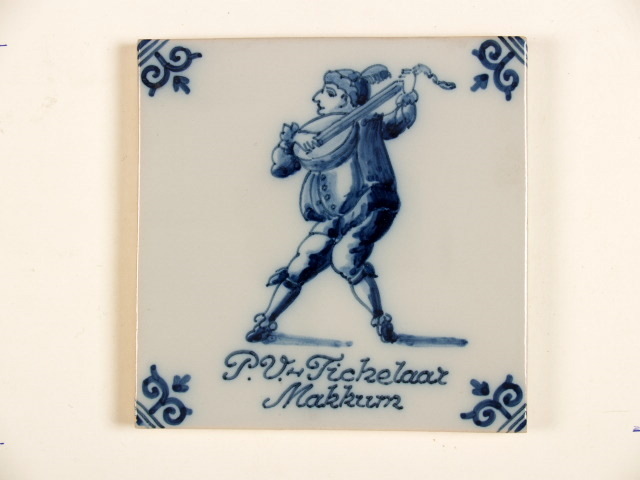 Tegel met blauwwit decor van een muzikant