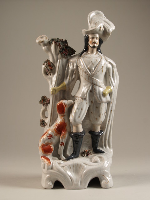 De beeld bestaat uit een manspersoon in quasi-Middeleeuwse kleding, die wordt geflankeerd door een hond. De man leunt tegen een schijnbaar dode boom. De basis is uitgevoerd met voluutvormige ornamentiek.