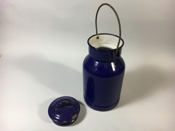 Blauw emaille, deksel en hengsel