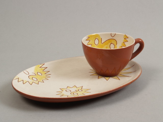 Kop en schotel met decor van zonnen, model TV-set