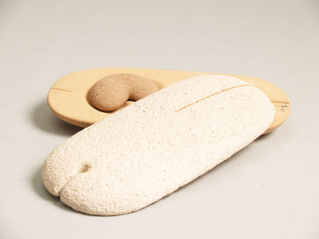 Object bestaande uit 2 afgeronde langwerpige, op elkaar passende, delen, waarbinnen een klein hartvormig object in een uitgespaarde holte