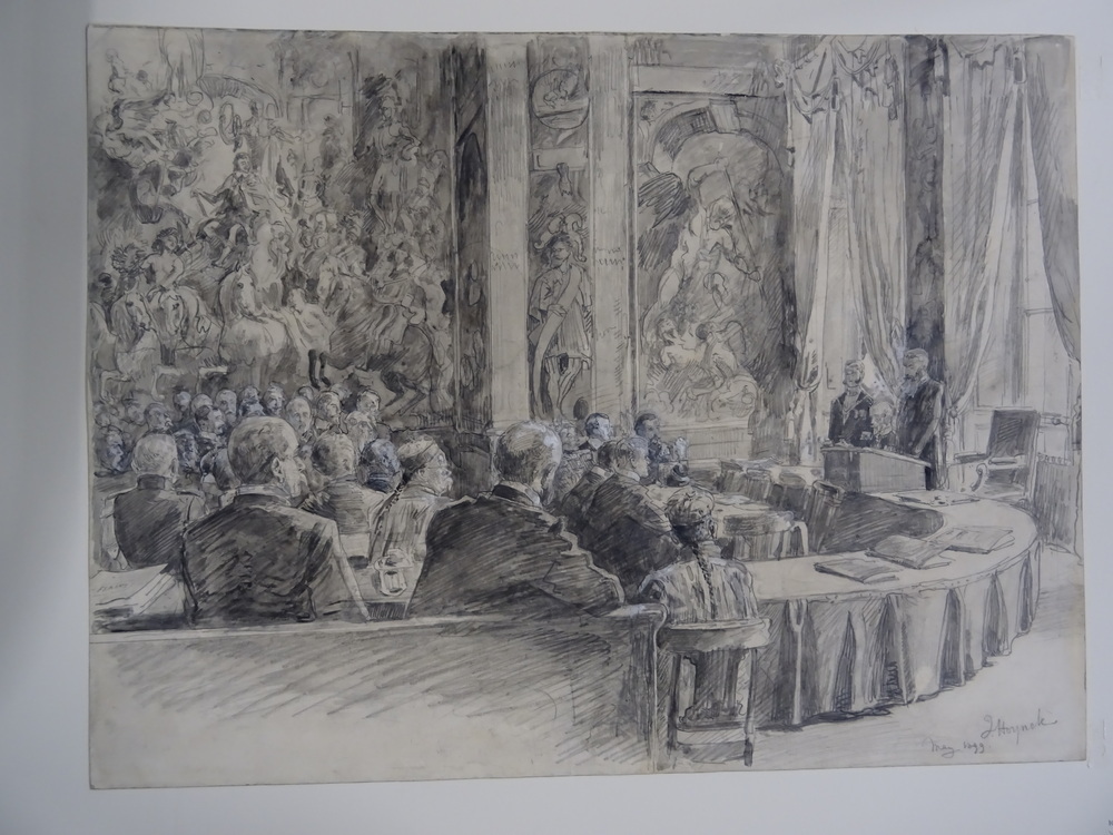 Opening van de eerste vredesconferentie in Het Huis Ten Bosch in 1899.