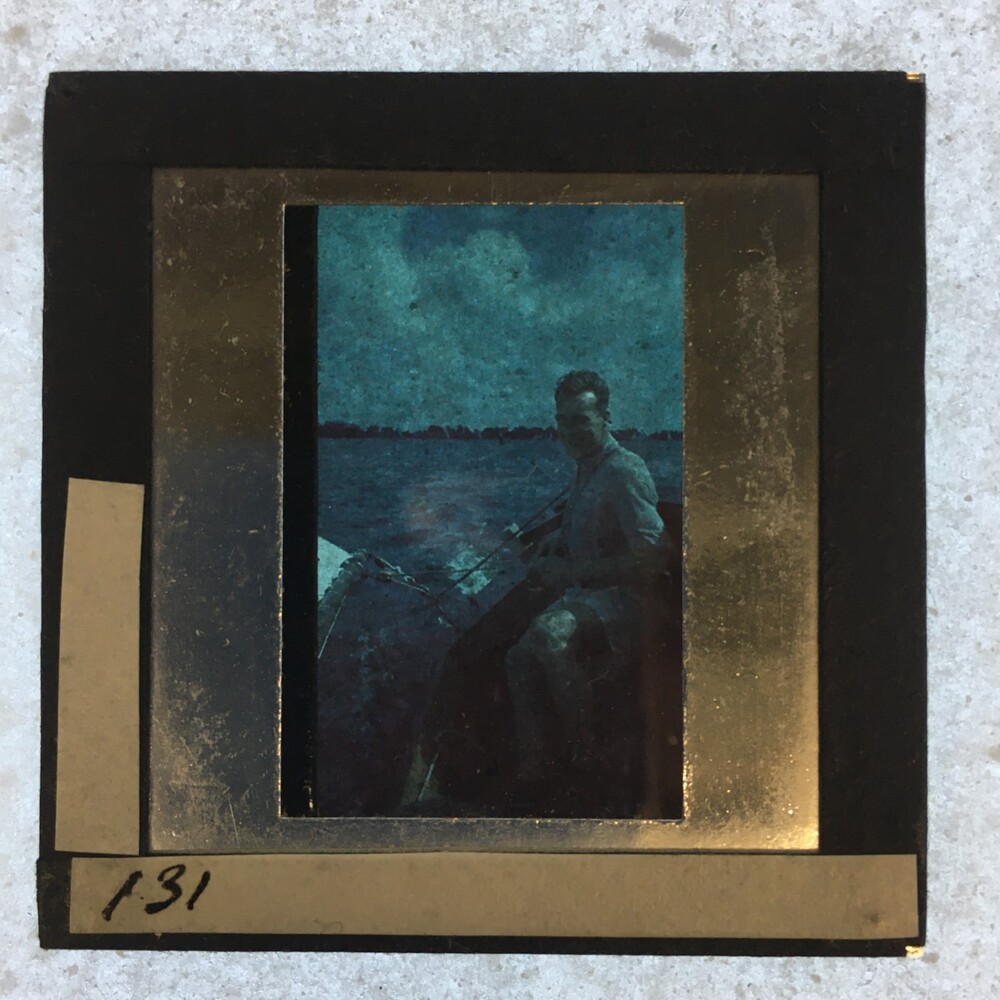 Jongeman aan het roer van een zeilboot