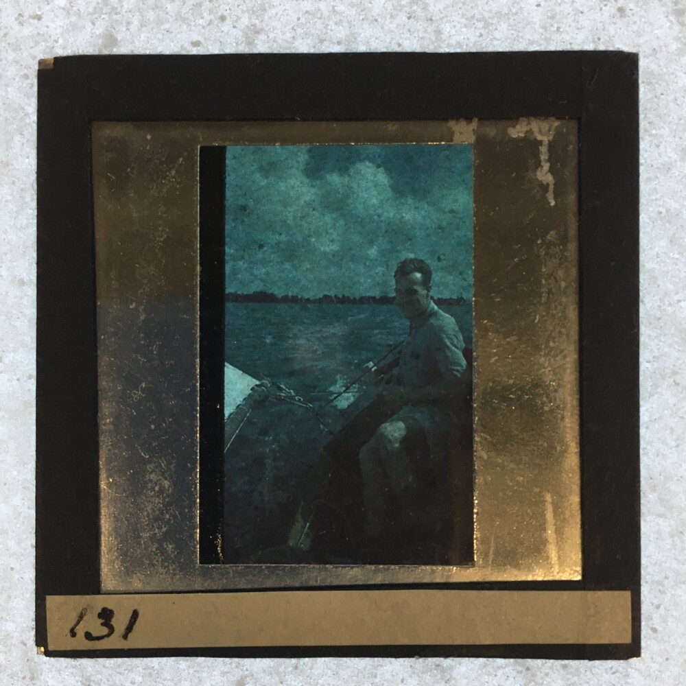 Jongeman aan het roer van een zeilboot
