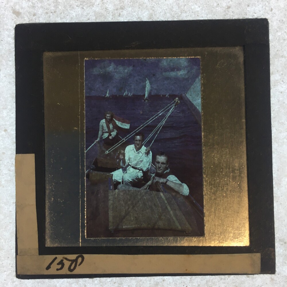 Twee mannen en vrouw in kajuit