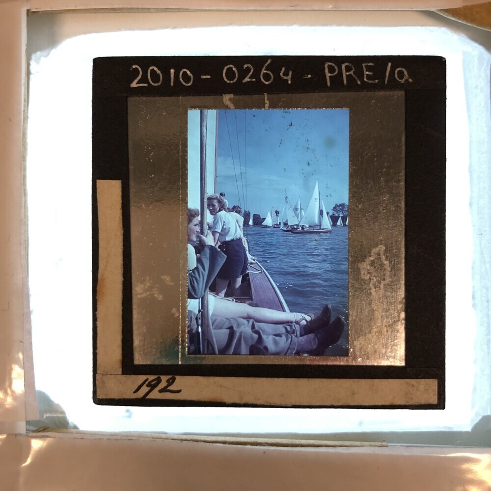 Janke van der Kooi en jongedame op een zeilboot