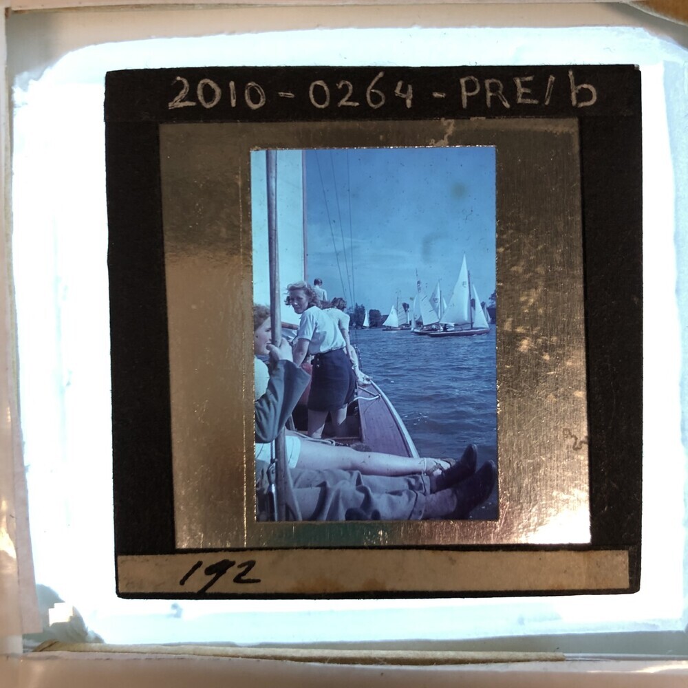 Janke van der Kooi en jongedame op een zeilboot