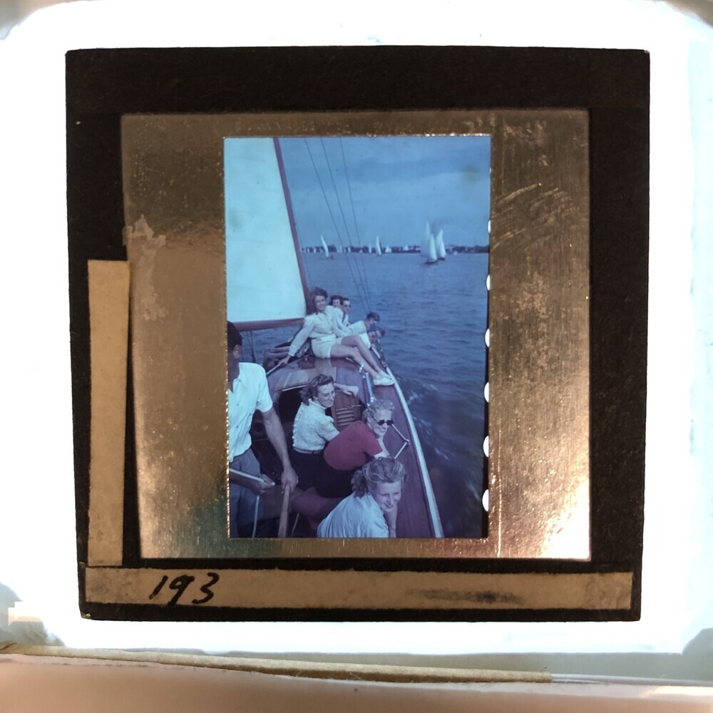 Vijf dames en vier heren op een zeilboot