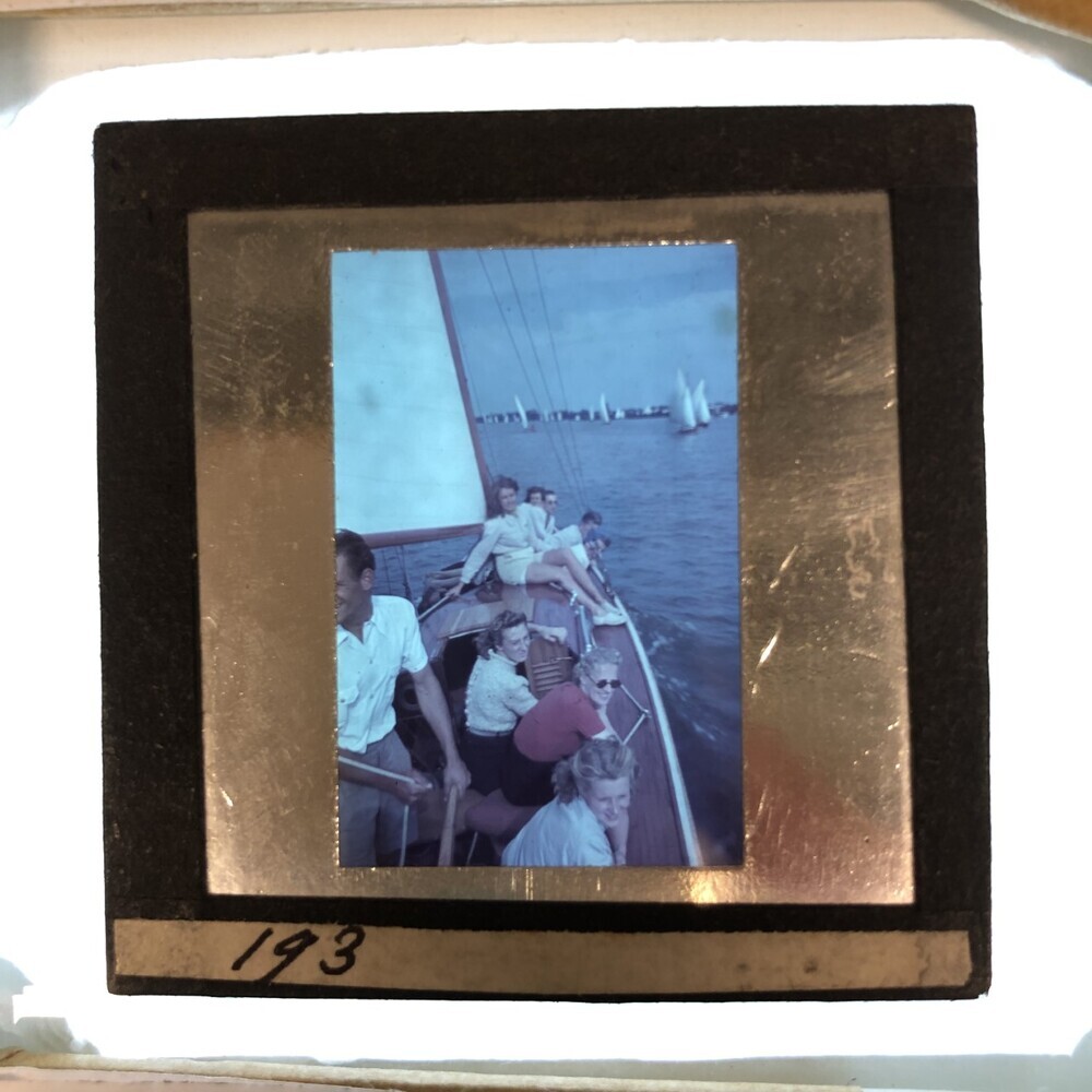 Vijf dames en vier heren op een zeilboot