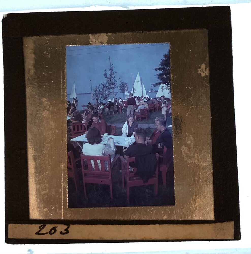 Groep jongeren op terras op De Kaag