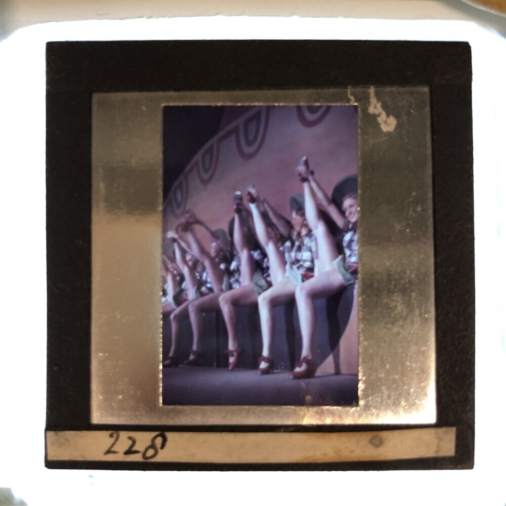 Revuegirls tonen hun benen zittend op een rij