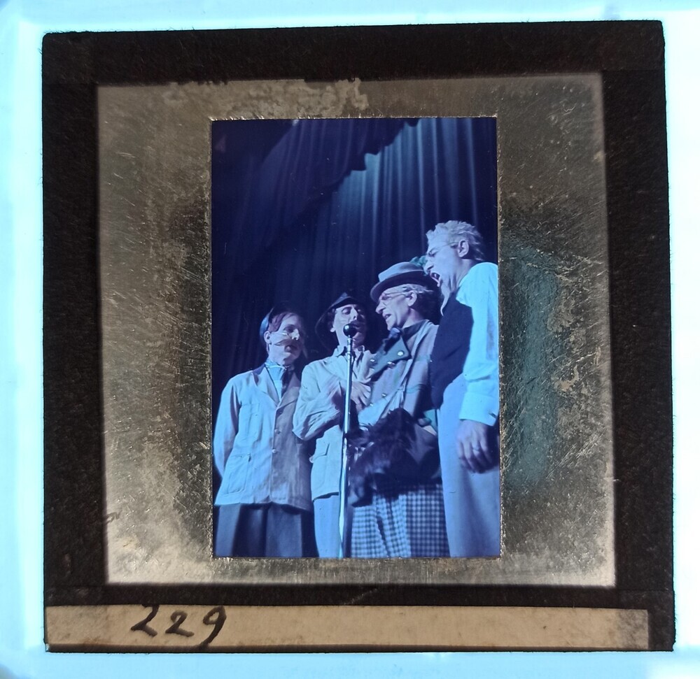 Vier revuezangers op het podium