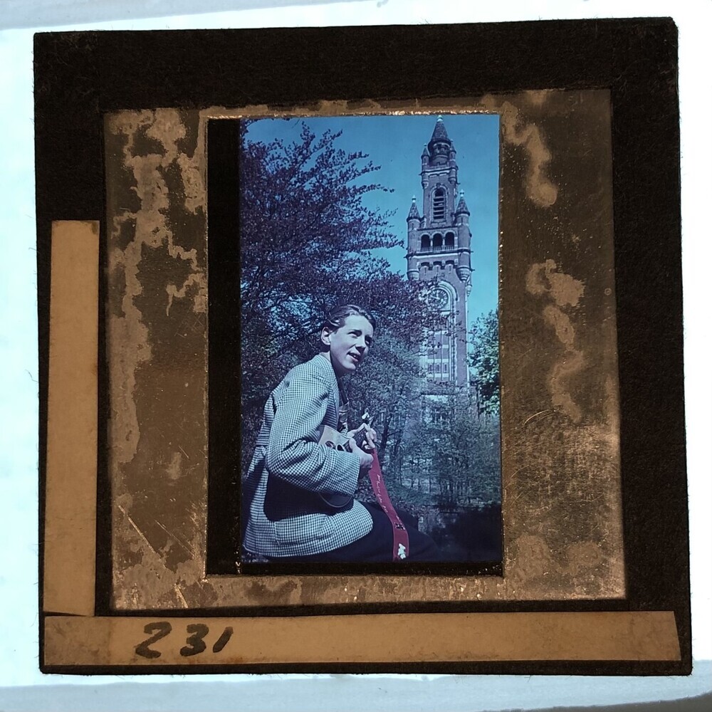 Halfbroer Jan Berssenbrugge met zicht op Vredespaleis toren
