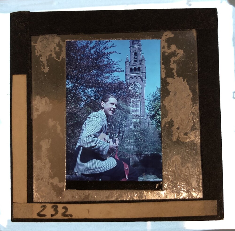 Halfbroer Jan Berssenbrugge met zicht op Vredespaleis toren