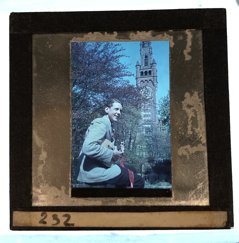 Halfbroer Jan Berssenbrugge met zicht op Vredespaleis toren