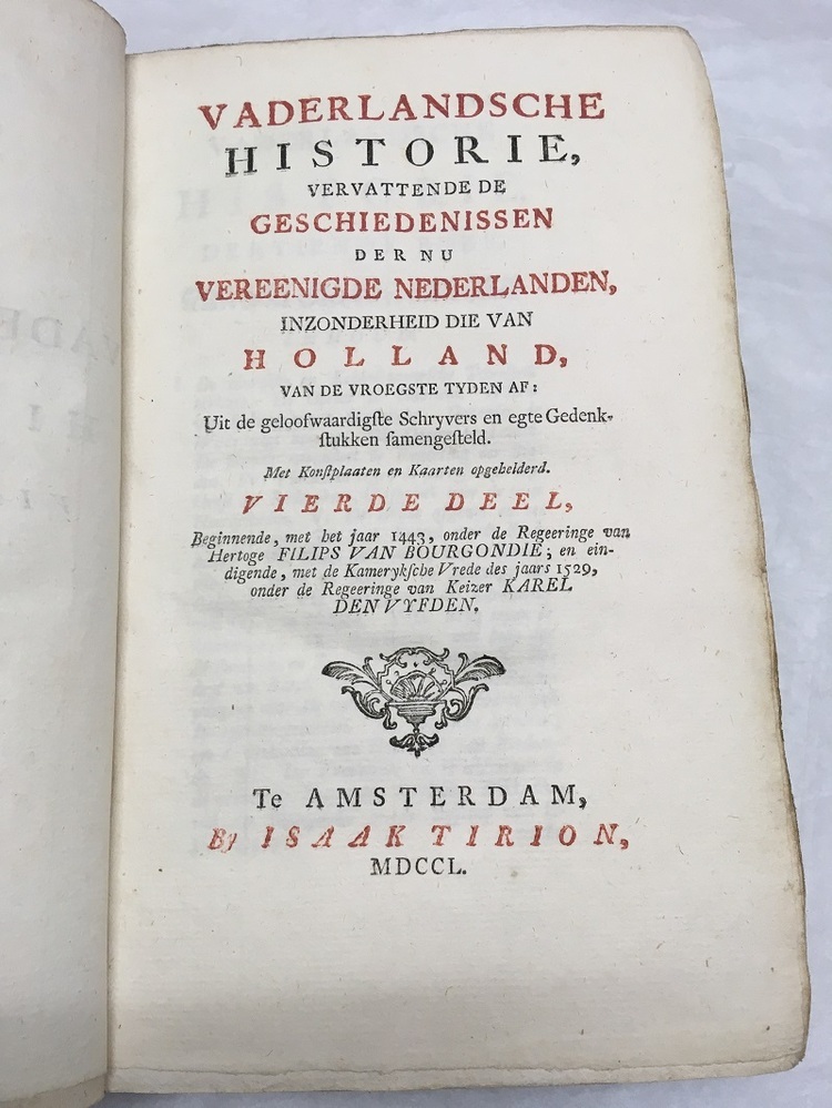 Vaderlandsche historie, vervattende de geschiedenissen der nu Vereenigde Nederlanden inzonderheid die van Holland; van de vroegste tyden af uit de geloofweardigste schrijvers en egte gedenkstukken samengesteld