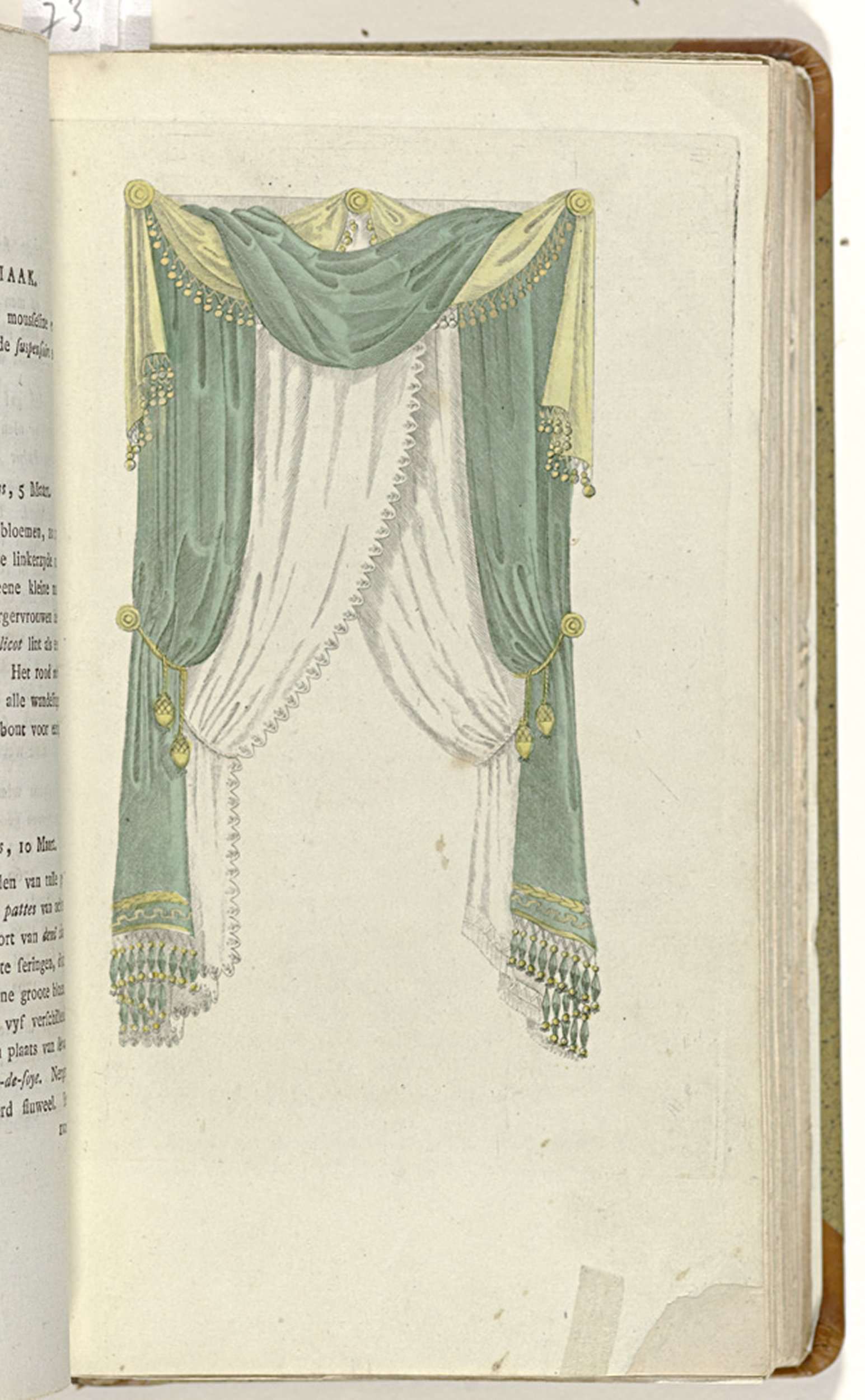 Elegantia, of tijdschrift van mode, luxe en smaak voor dames, Februari 1809, t.o. pag. 90 : Elegante vensterdraperie