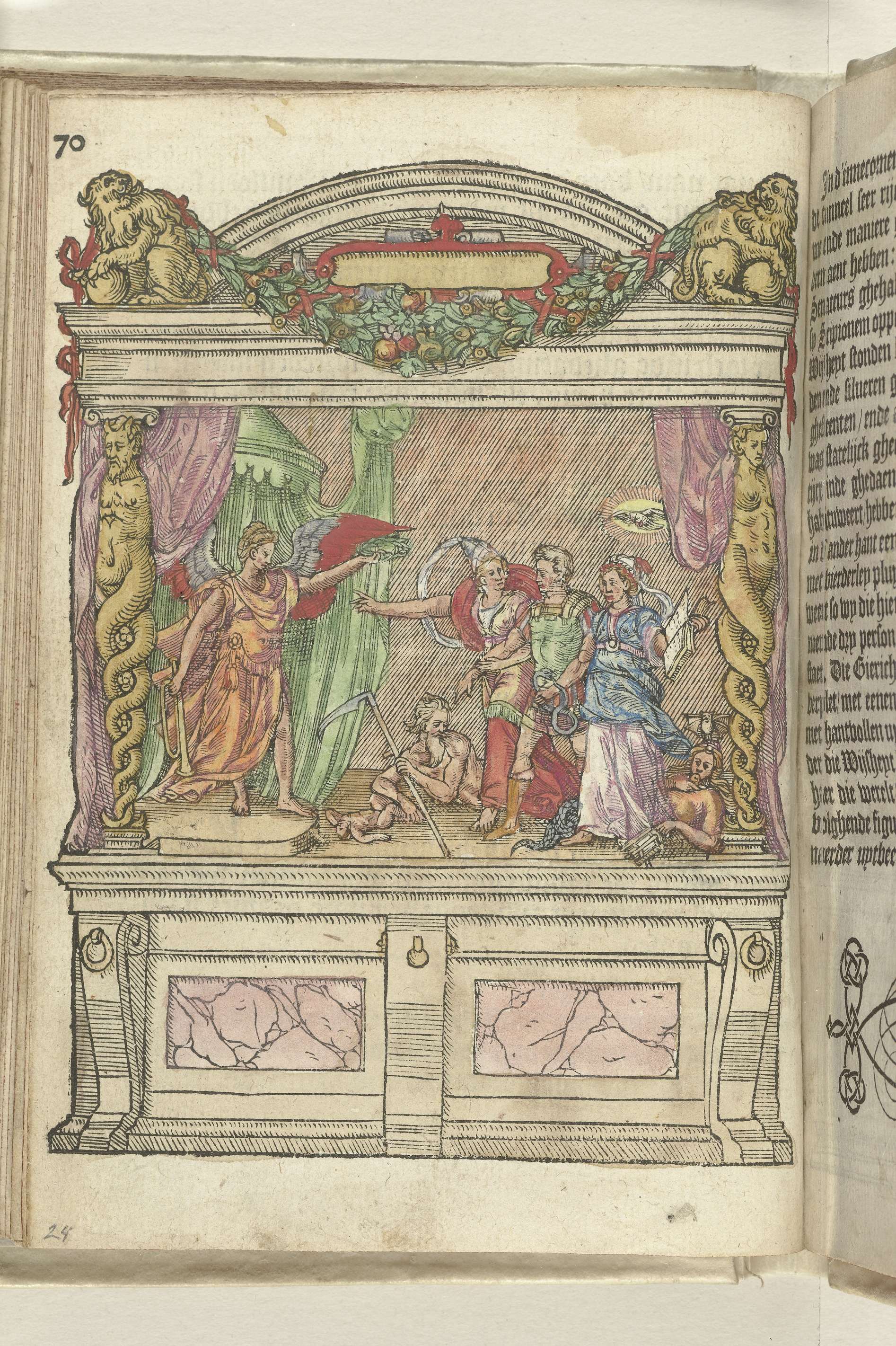 Het toneel opgesteld bij de Munt een met allegorische voorstelling uit het verhaal van Scipio, 1578. Toneelvoorstelling tijdens de intocht van Matthias te Brussel, 18 januari 1578.