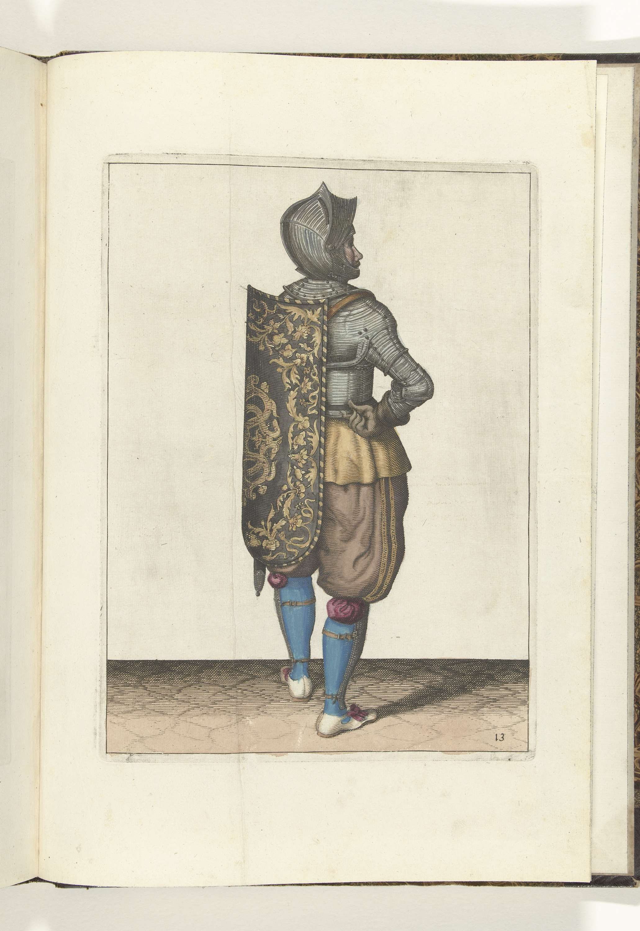 De exercitie met de targe en rapier: de soldaat hangt de targe terug op zijn rug, (nr. 13), 1618