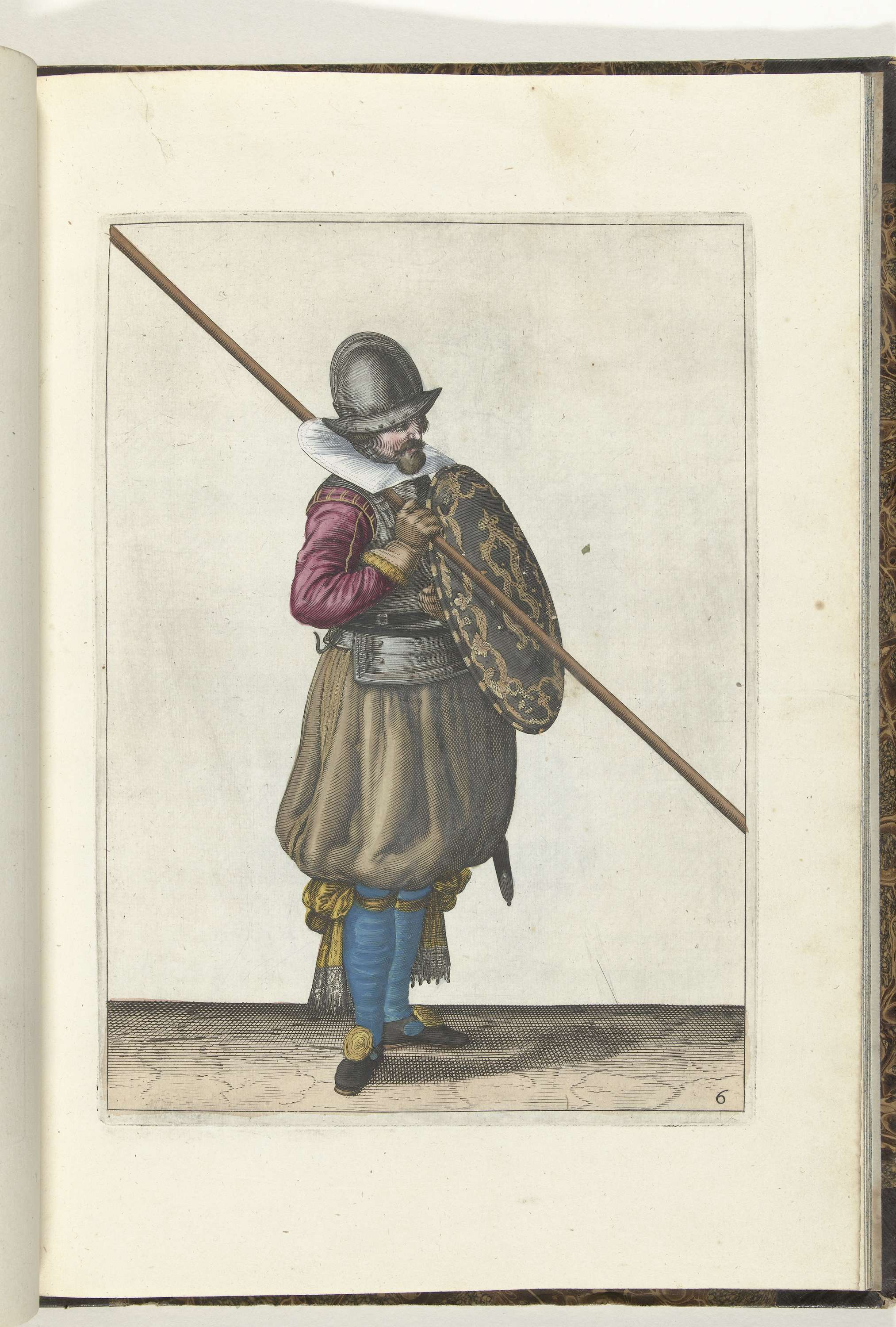 De exercitie met schild en spies: de soldaat houdt het schild met de linkerhand vóór het lichaam (nr. 6), 1618