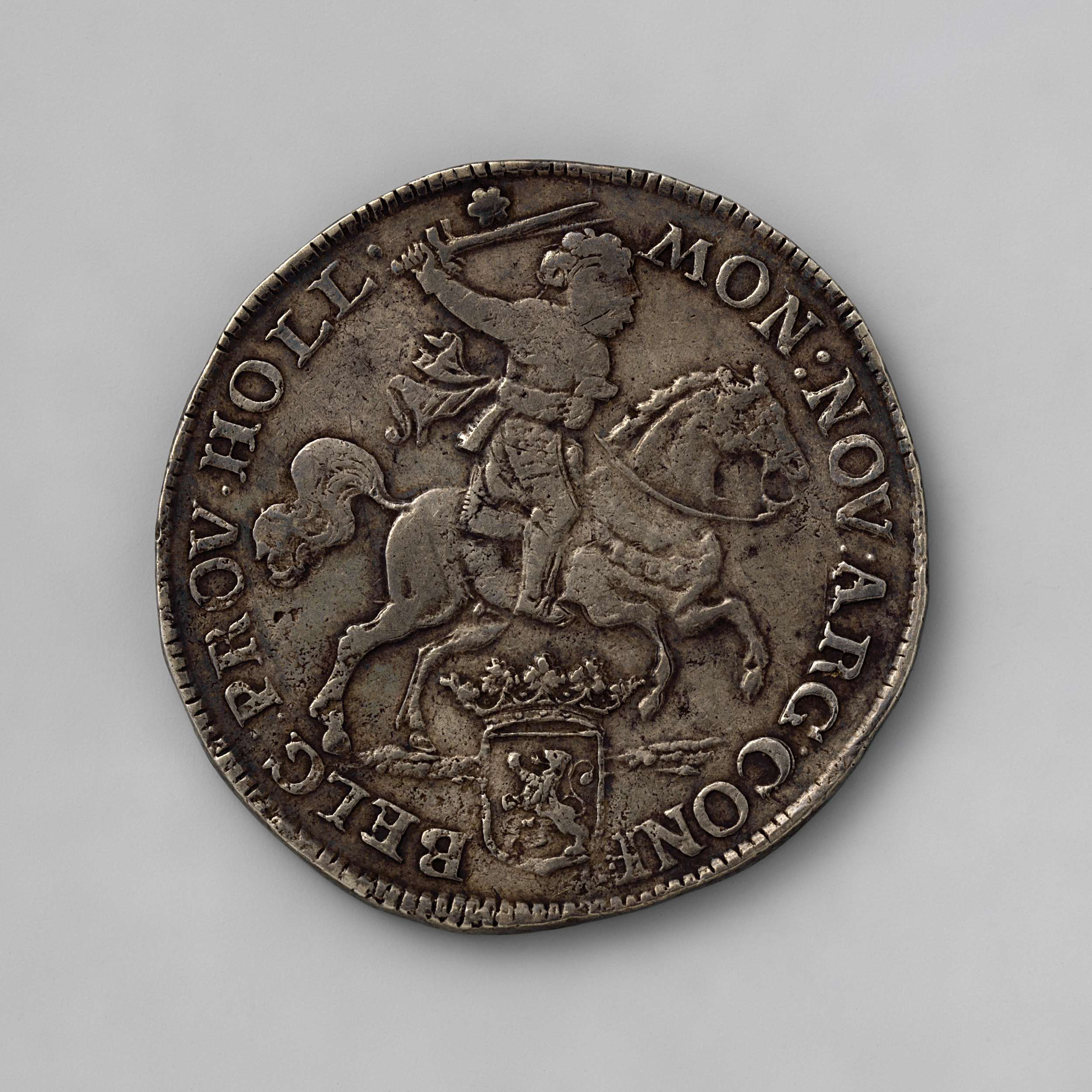 Voorzijde: ridder te paard naar rechts met in rechterhand zwaard. Onder paard gekroond wapenschild van Holland. Keerzijde: door twee gekroonde leeuwen gehouden generaliteitswapenschild. Daaronder in cartouche wapenschild van Amsterdam. Boven kroon in omschrift jaartal.