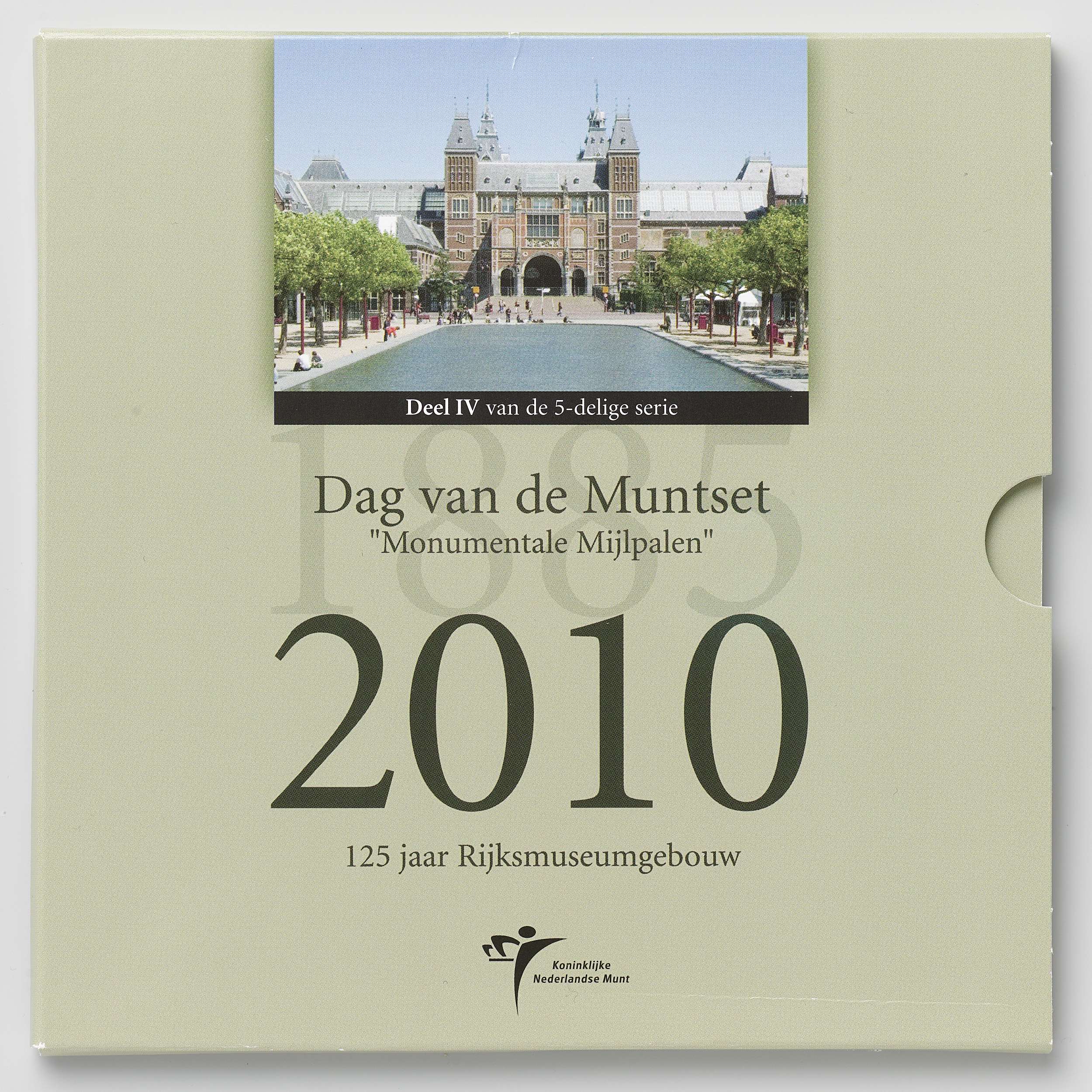 Vierkante map waarin driebladig boekje met geplastificeerde kartonnen bladen. In het middelste blad zijn in een cirkel de acht gangbare euromunten geseald (1 cent t/m 2 euro), met de muntwaarde aan de voorzijde van de pagina en de kop (koningin Beatrix) aan de achterzijde. In het midden een zilveren penning. Voorzijde: een foto van de ...