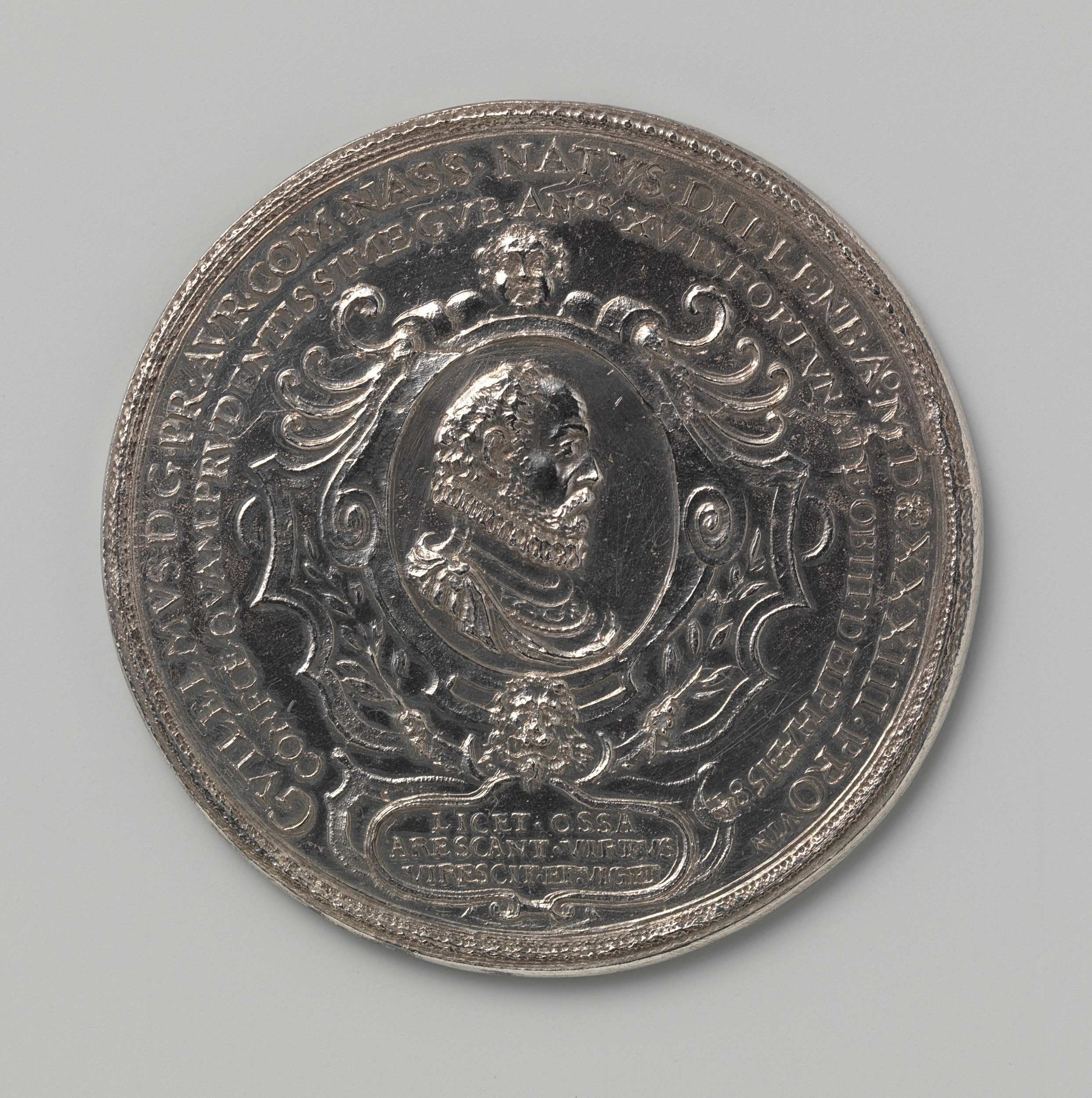 Zilveren penning. Voorzijde: borststuk man binnen sierrand en tweeregelig omschrift, boven cartouche met opschrift. Keerzijde: ijsvogel vliegt zijn nest binnen dat op zee drijft binnen omschrift en sierrand