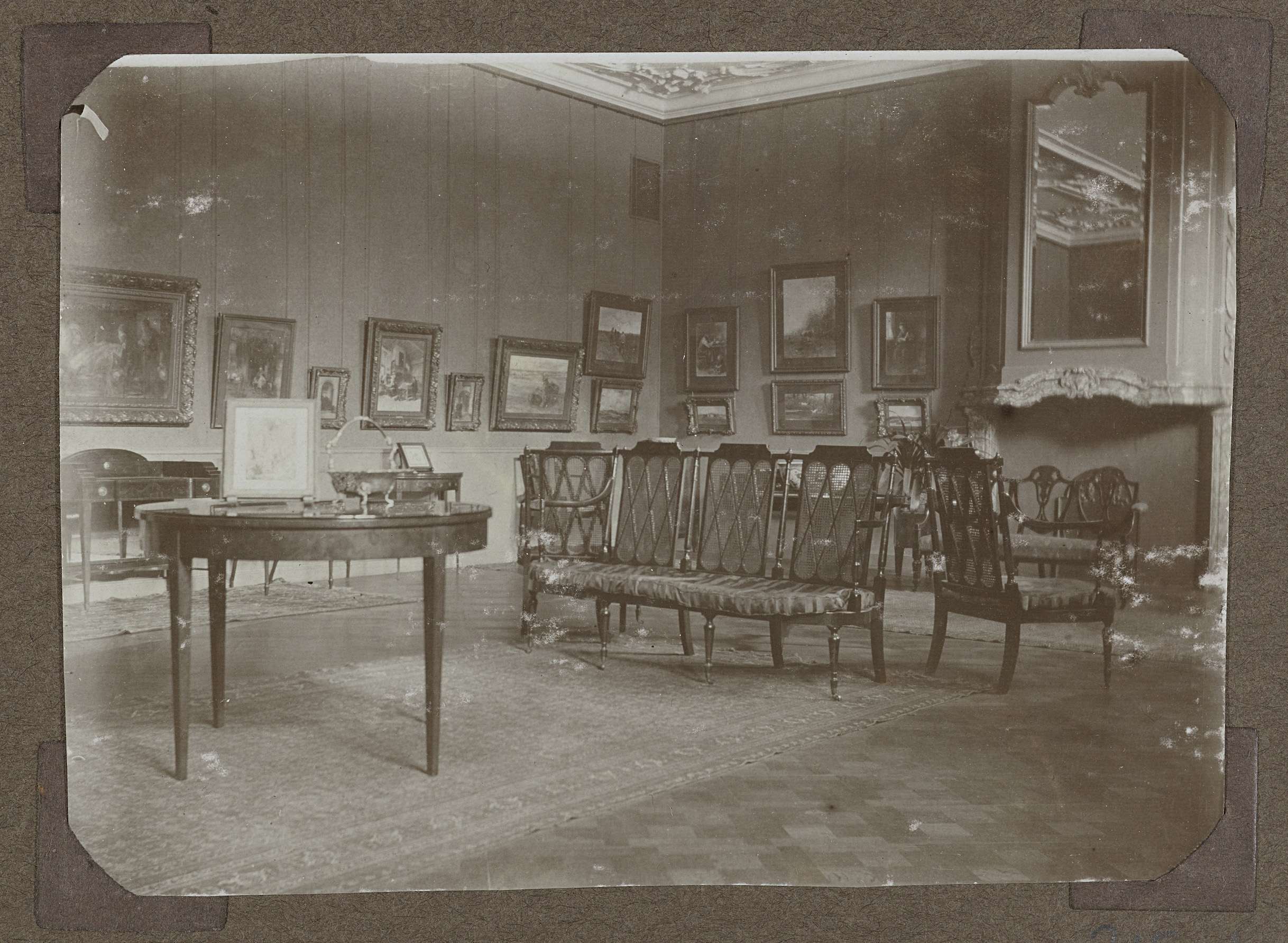 Opstelling van aquarellen en meubels in zaal 373 in 1922.