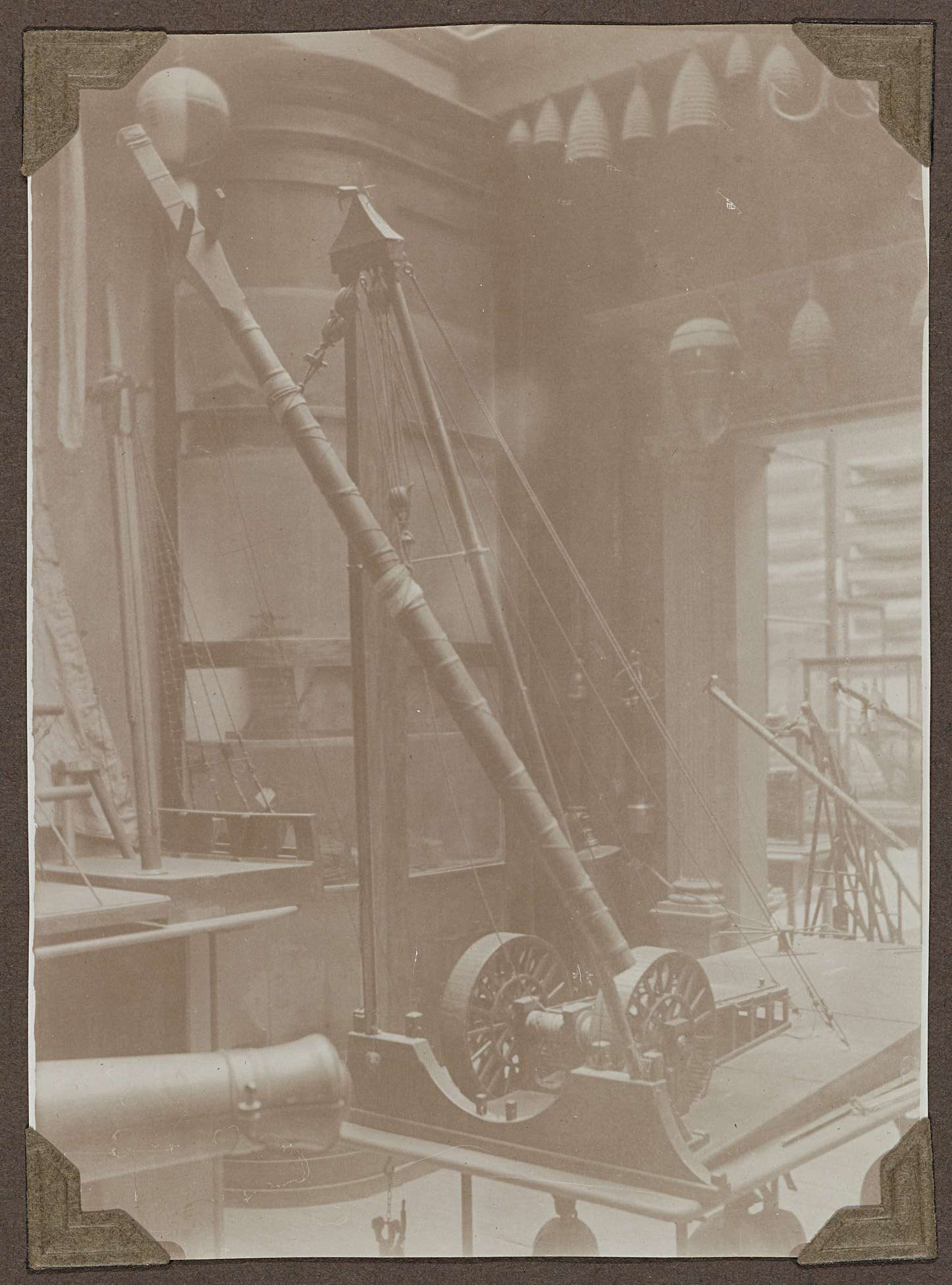 Opstelling van verschillende hijstoestellen in de oostelijke binnenplaats omstreeks 1927