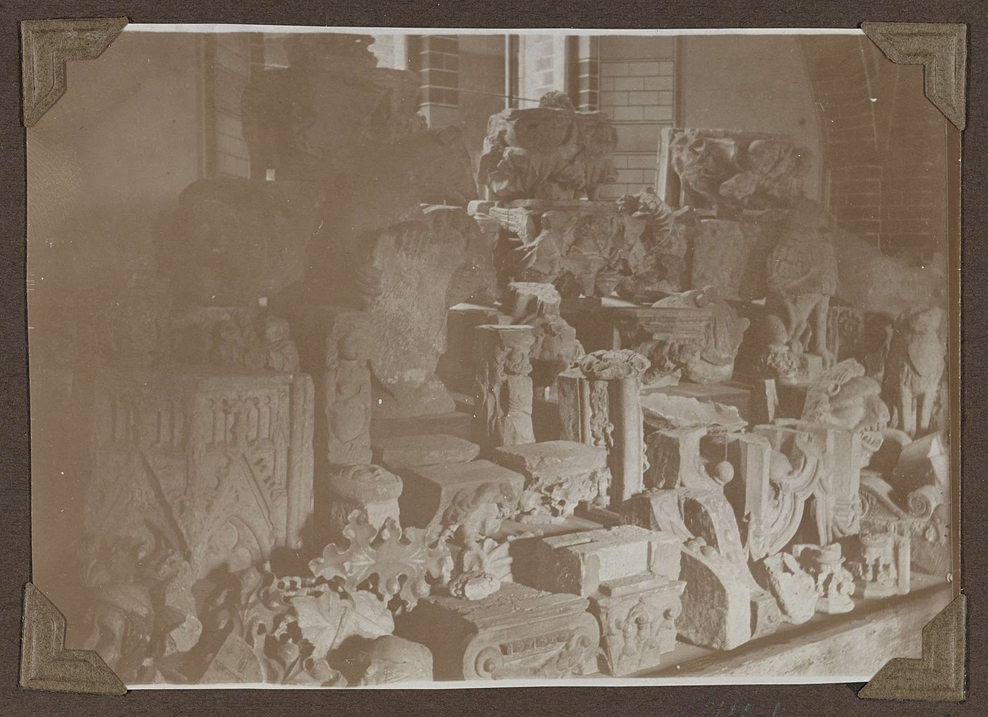 Opstelling van bouwfragmenten in het souterrain in 1929