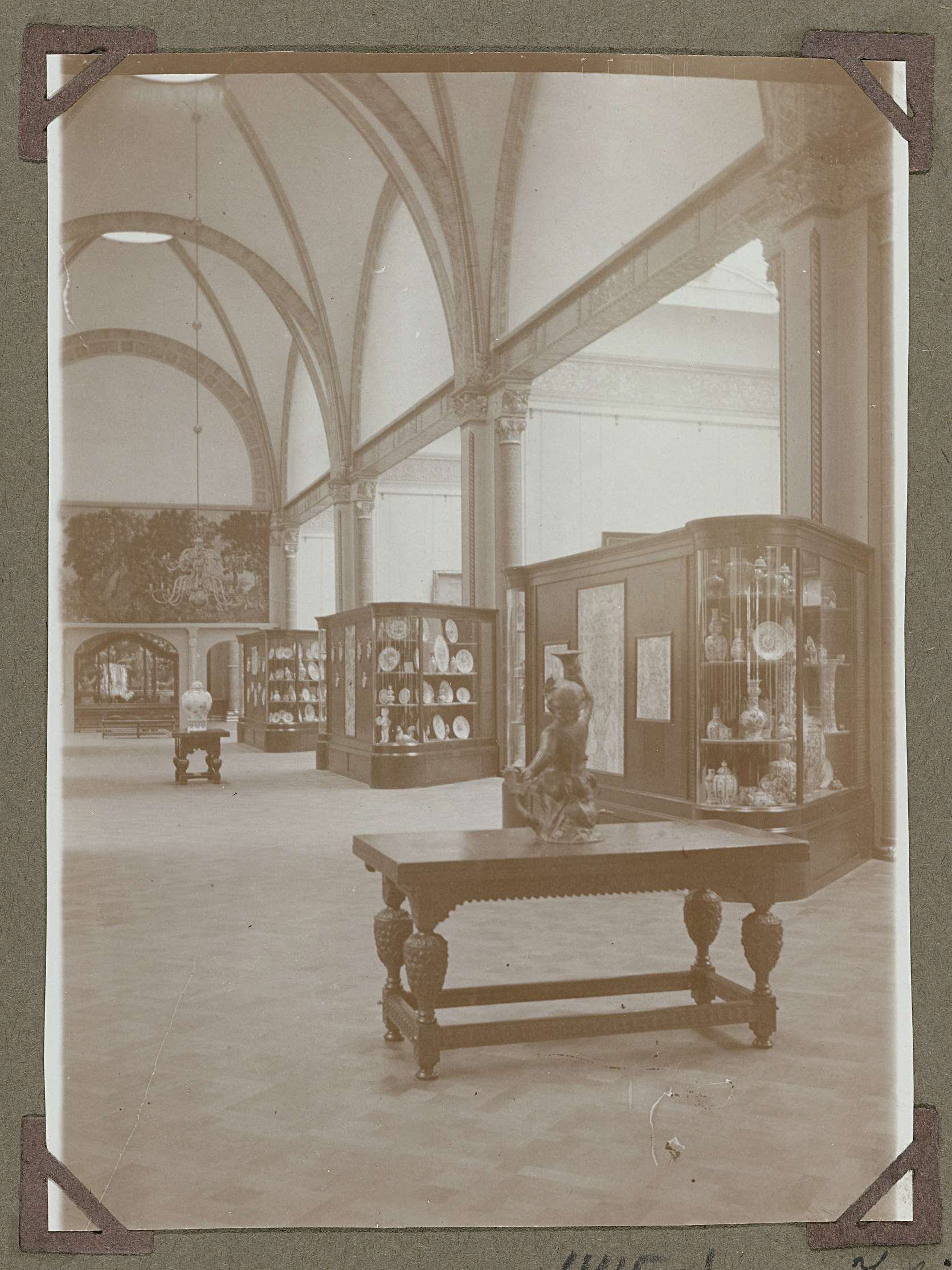 Opstelling van Delfts aardewerk in de Eregalerij in 1929
