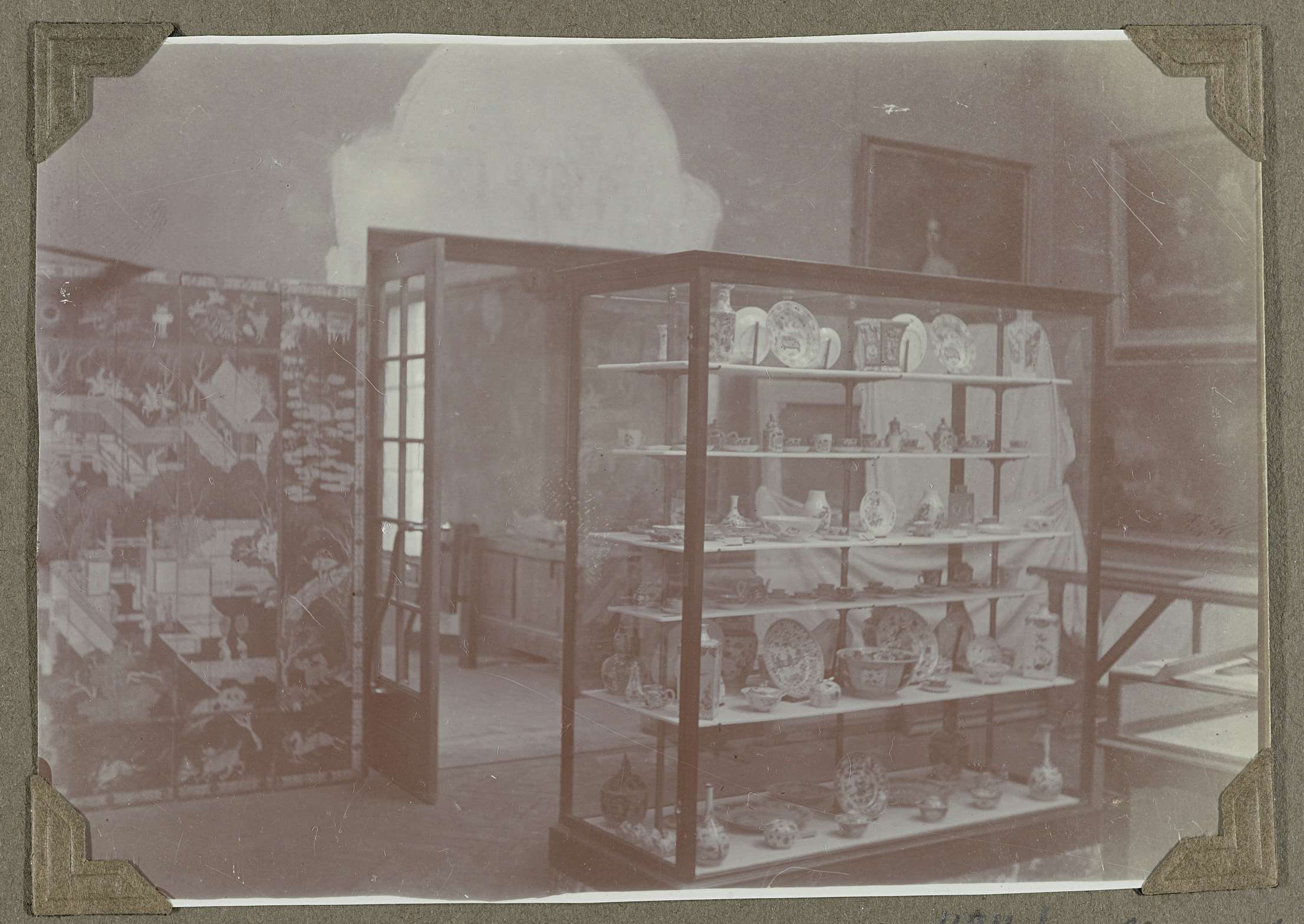 Zaal 342, in de Druckeruitbouw, gezien naar het noorden met de doorgang naar de vebindingsgang naar het hoofdgebouw. In de zaal is Chinees porselein opgesteld in vitrinekasten. Tegen de wand is een Chinees kamerscherm (?) te zien.