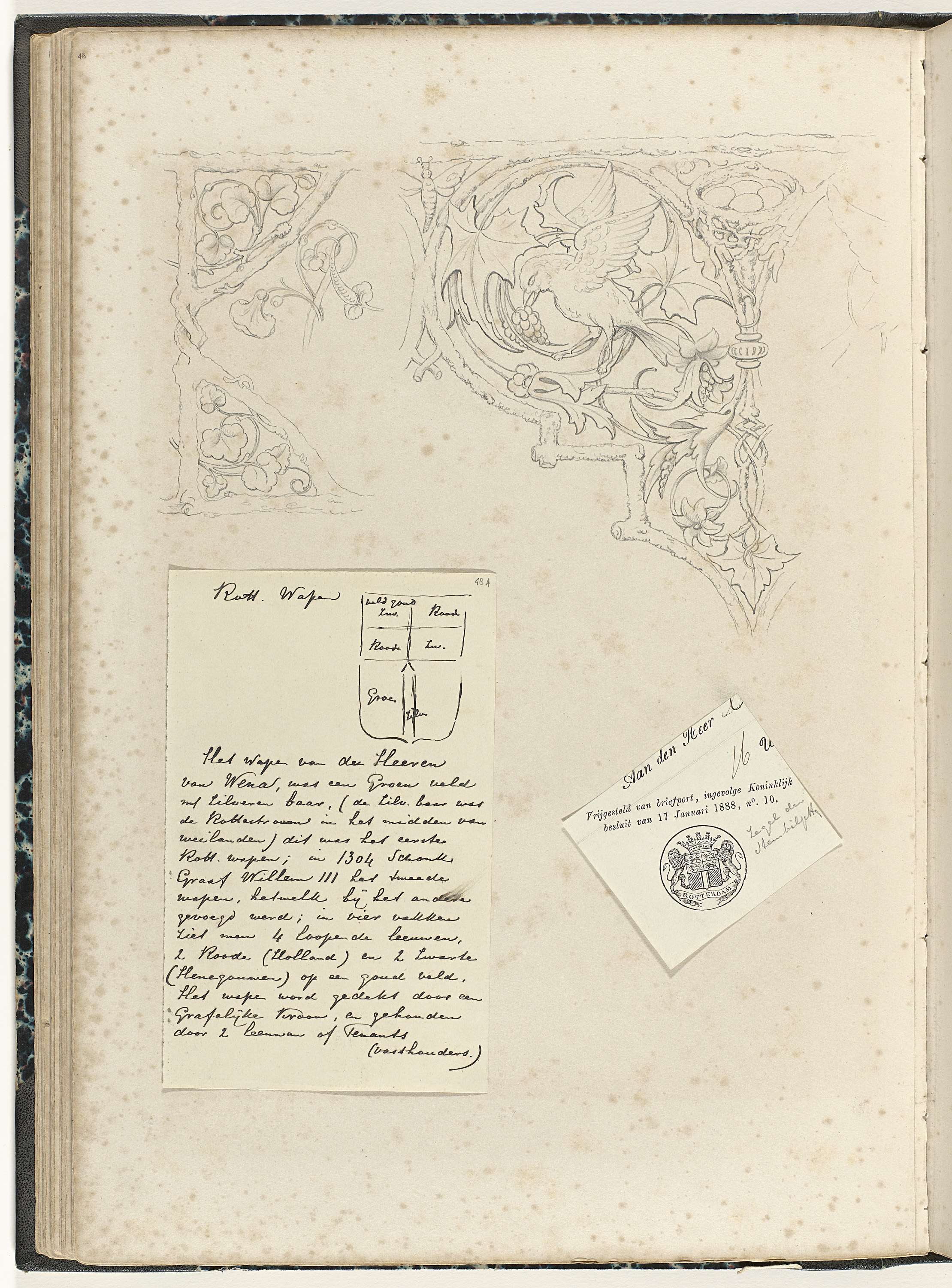 Brief met uitleg over de wapens van Rotterdam, rechtsboven staat een schets.
