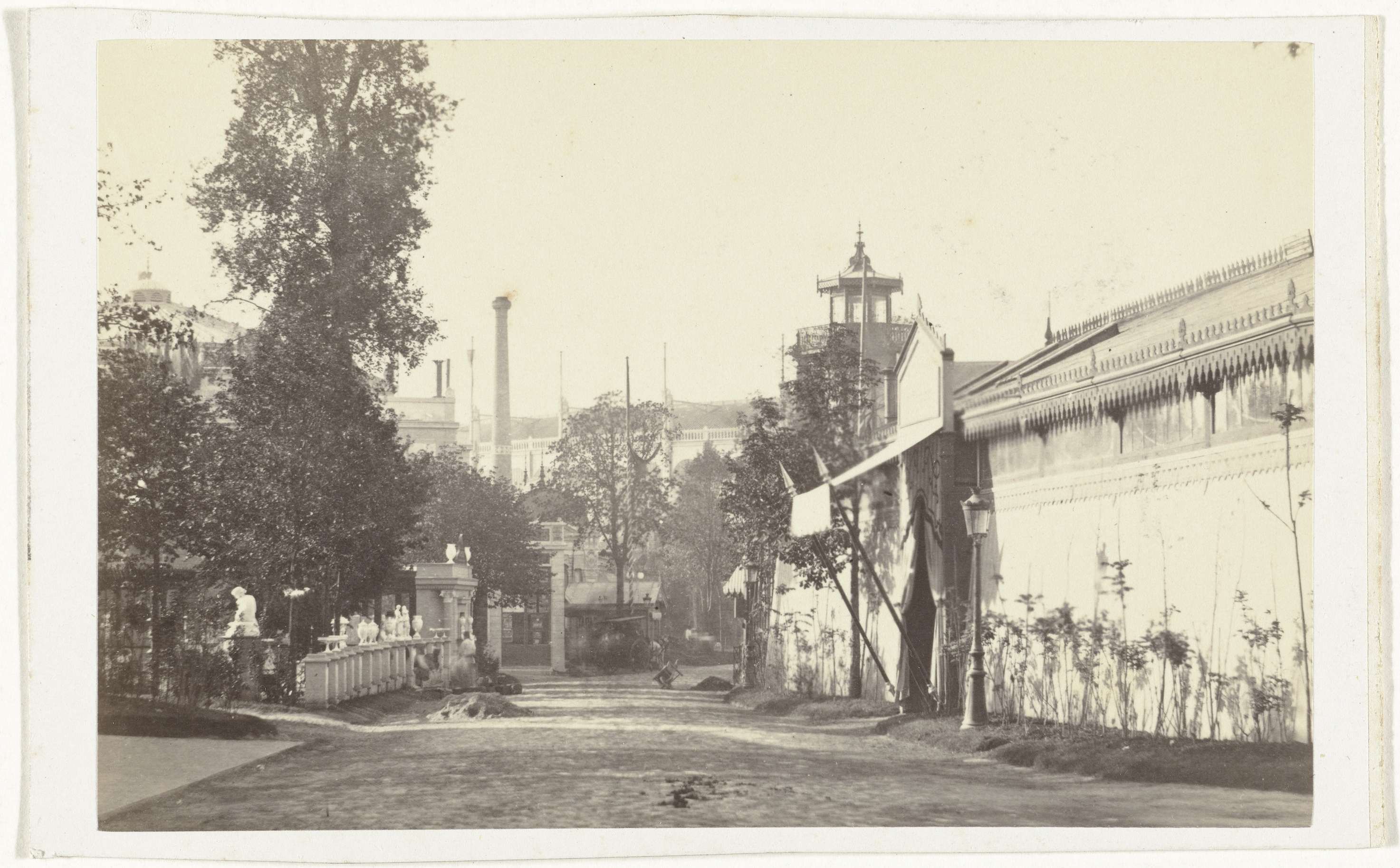 Gezicht op het tentoonstellingsterrein van de Wereldtentoonstelling van 1867 in Parijs