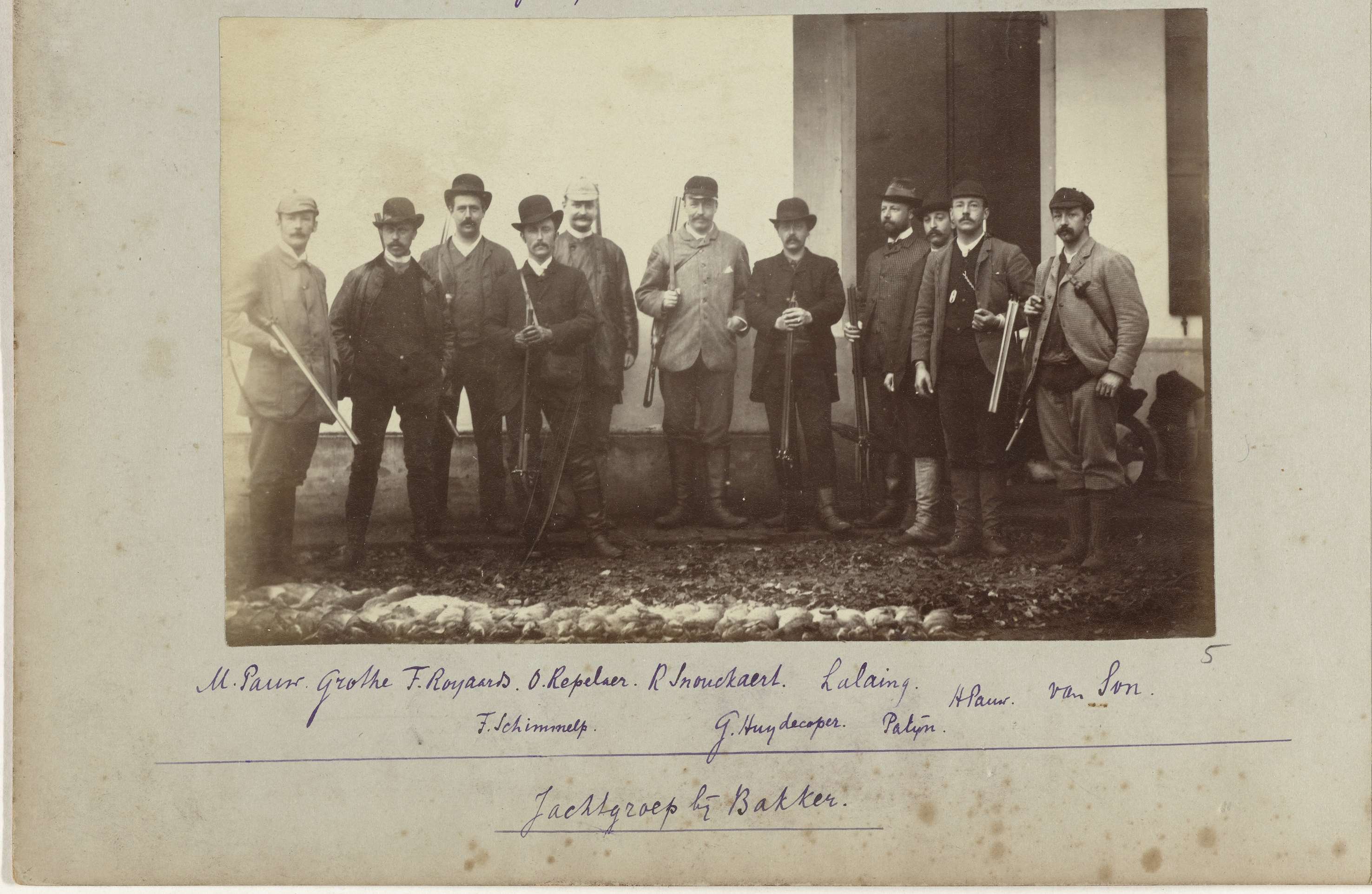 Geheel links Maarten Pauw van Wieldrecht, tweede van rechts Henry. Onder op het albumblad zijn alle namen van het gezelschap geschreven.