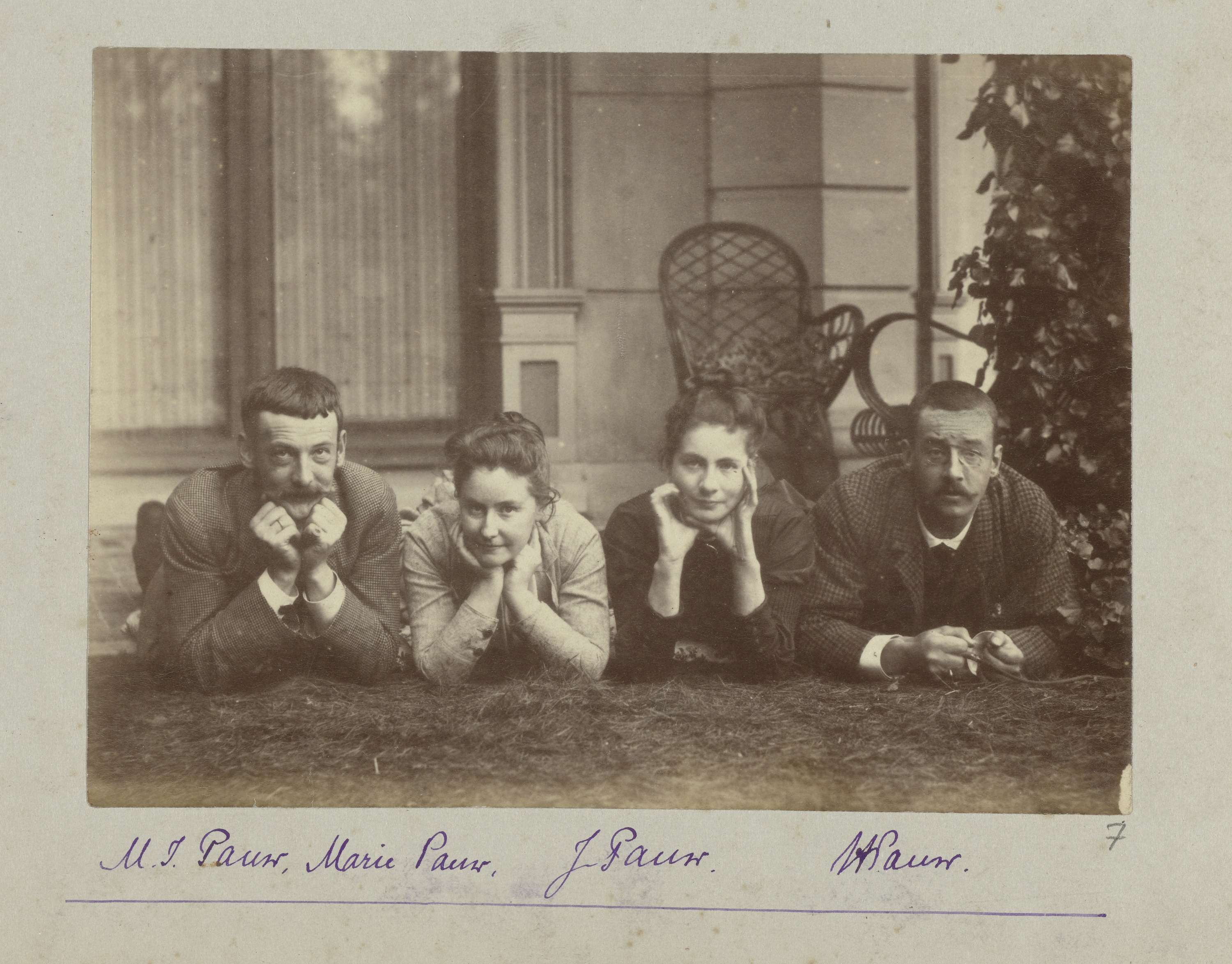 Een selfie uit 1888. De fotograaf (rechts) ligt met een draadontspanner op de grond. Hij en zijn familieleden hebben veel plezier. Het oogt ontspannen en ziet er niet zo stijf en geposeerd uit als op andere portretten rond die tijd. Een belangrijke kwaliteit van de amateurfotografie van toen is dat ze zo dicht bij het ...