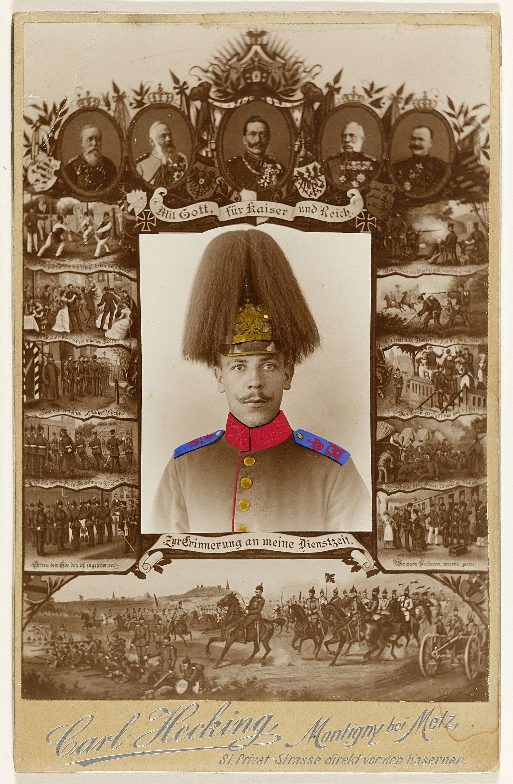 Met randvoorstellingen van scènes uit het militaire leven en vijf portretten, waaronder dat van keizer Wilhelm II.