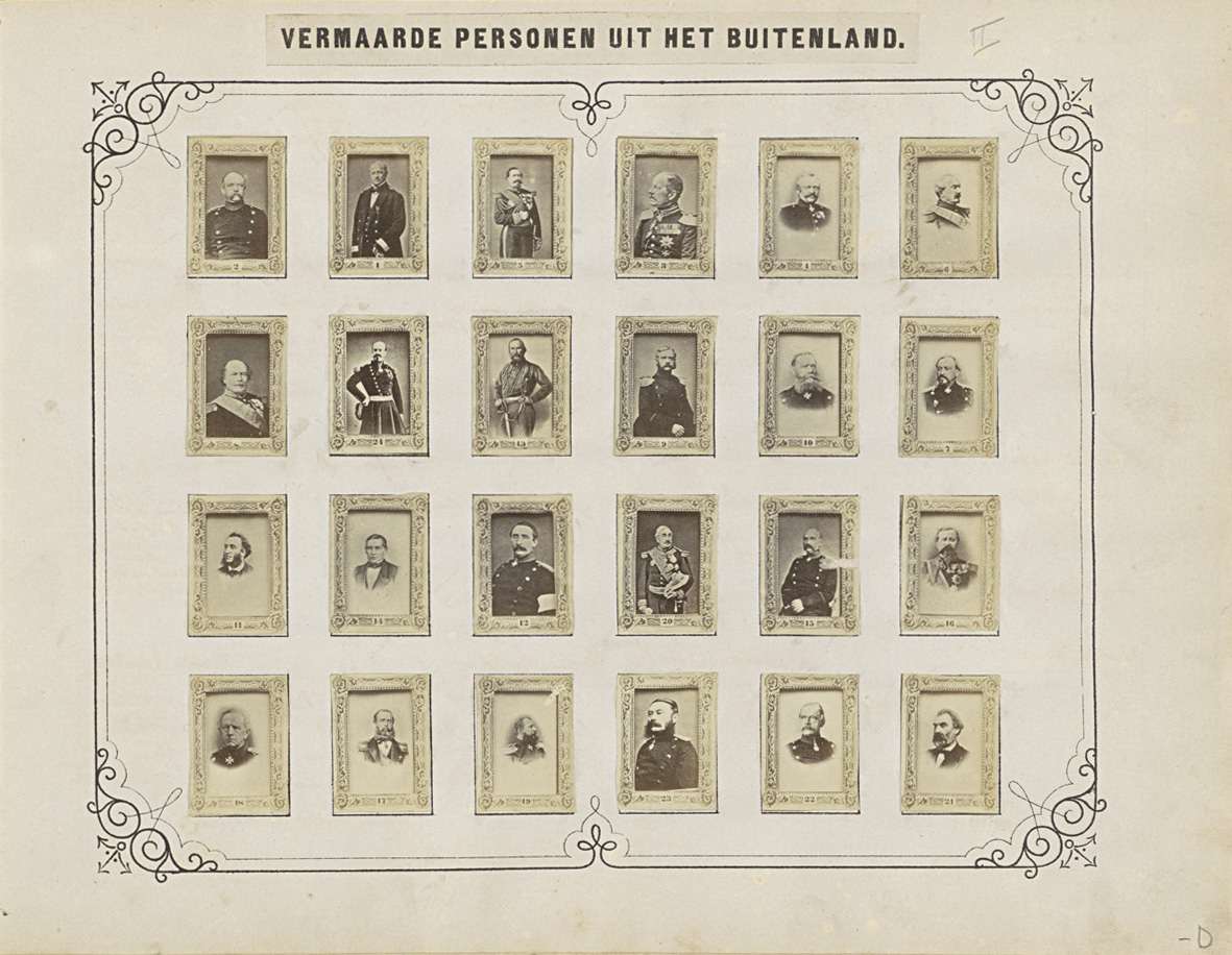 Twee albumbladen met namen en afbeeldingen van militairen uit het buitenland