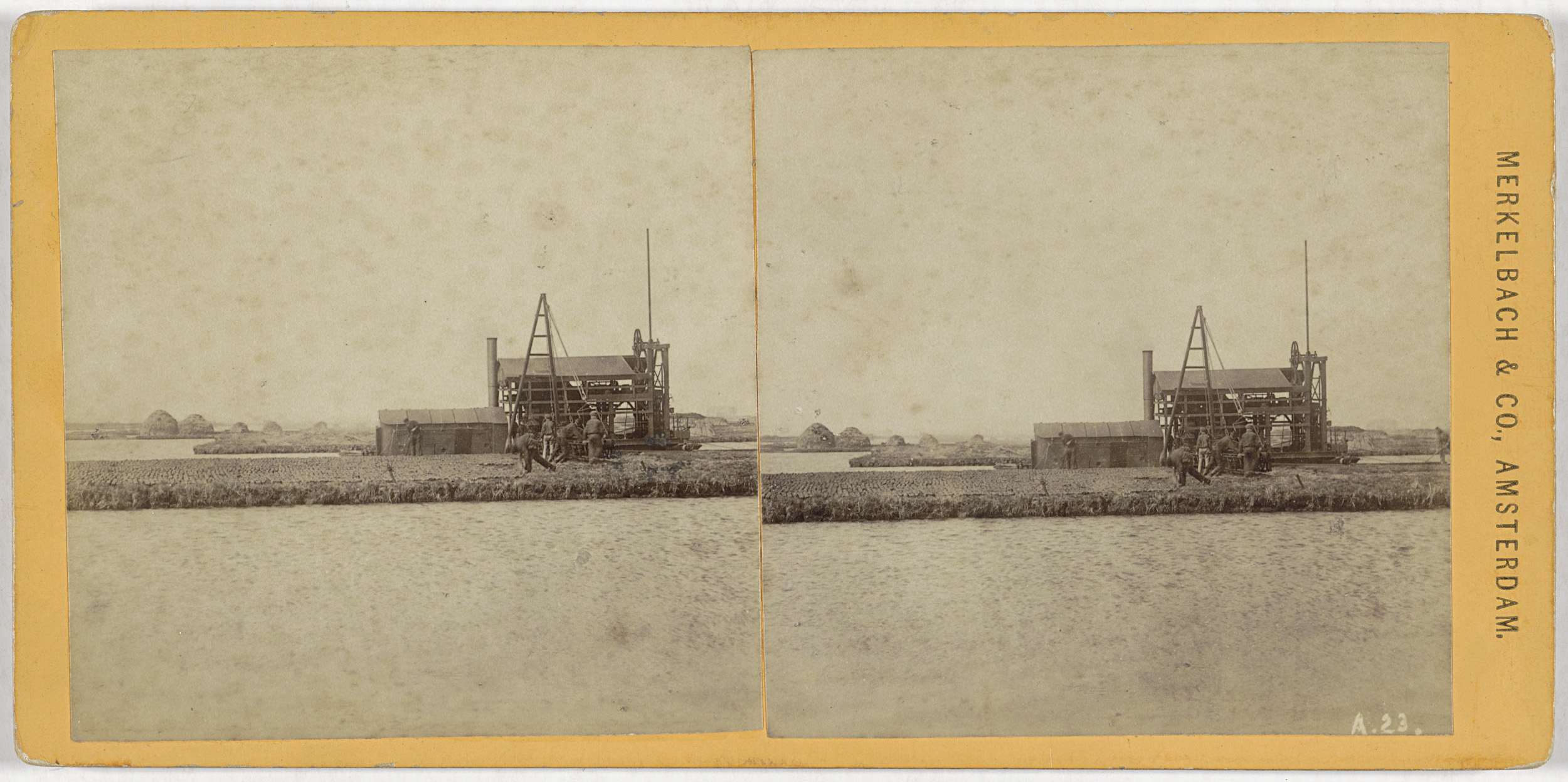 Gezicht op een rijksturfpersmachine in het laagveen ten zuidoosten van Amsterdam