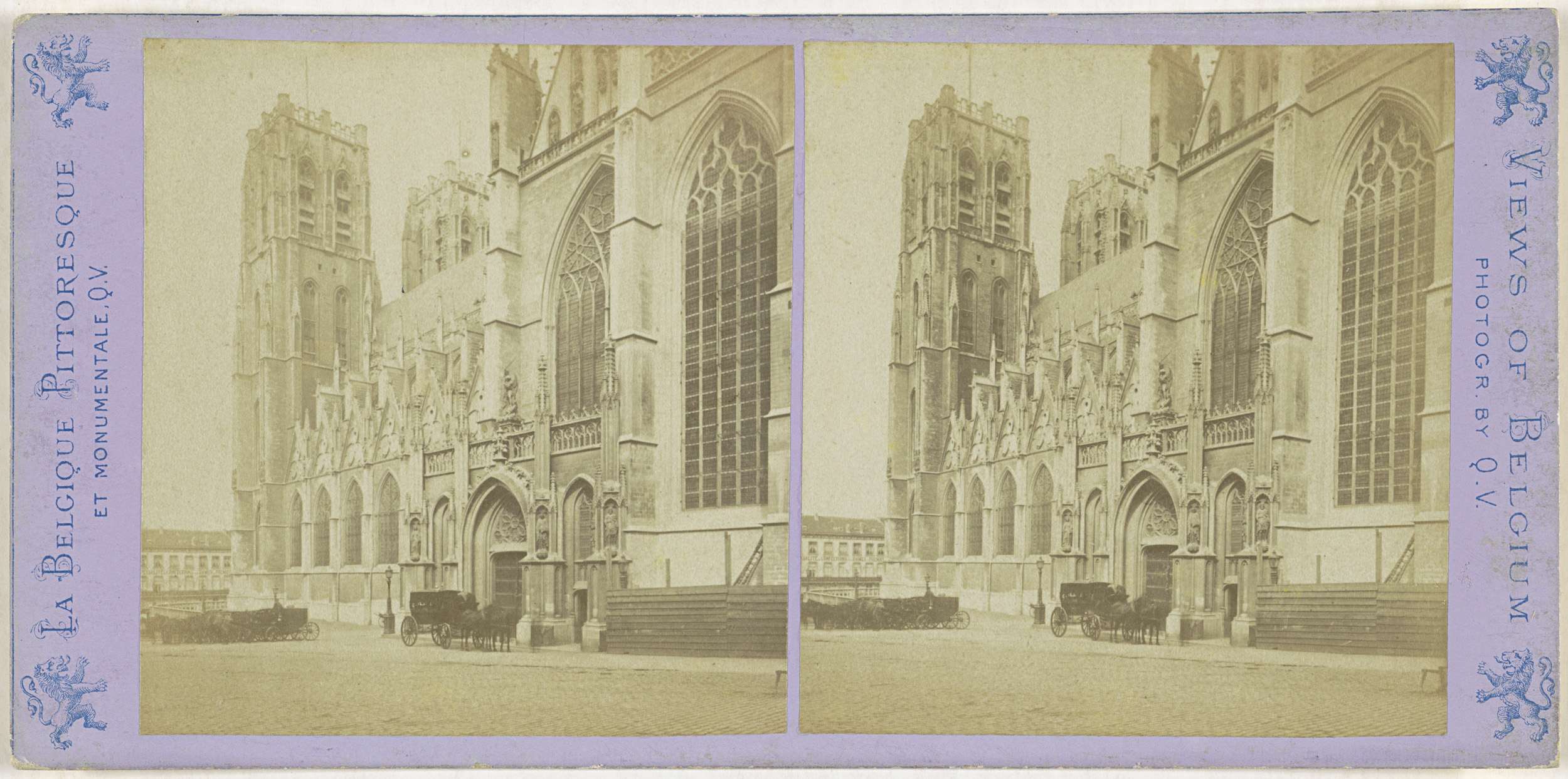 Gezicht op de zuidelijke kant van de Kathedraal van Sint-Michiel en Sint-Goedele in Brussel