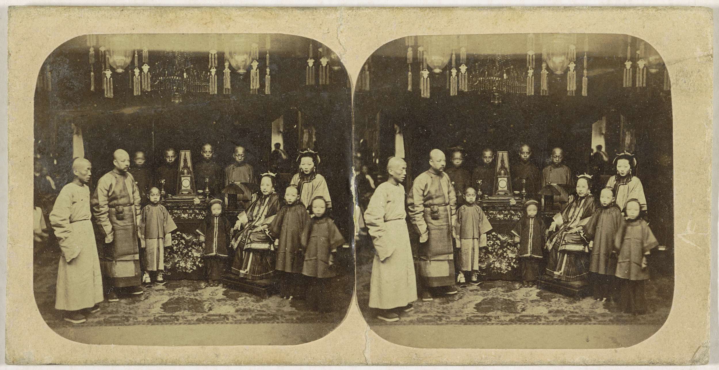 Groepsportret van een Chinees gezin met bedienden