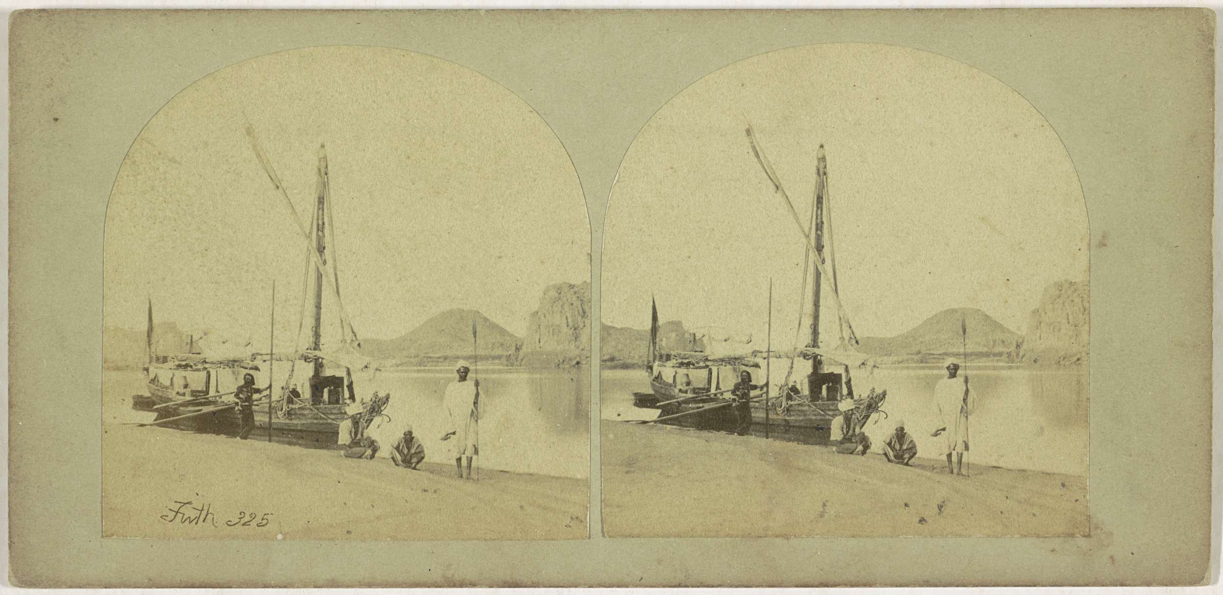 Nubische Egyptenaren aan de oever van de Nijl naast een Dahabieh
