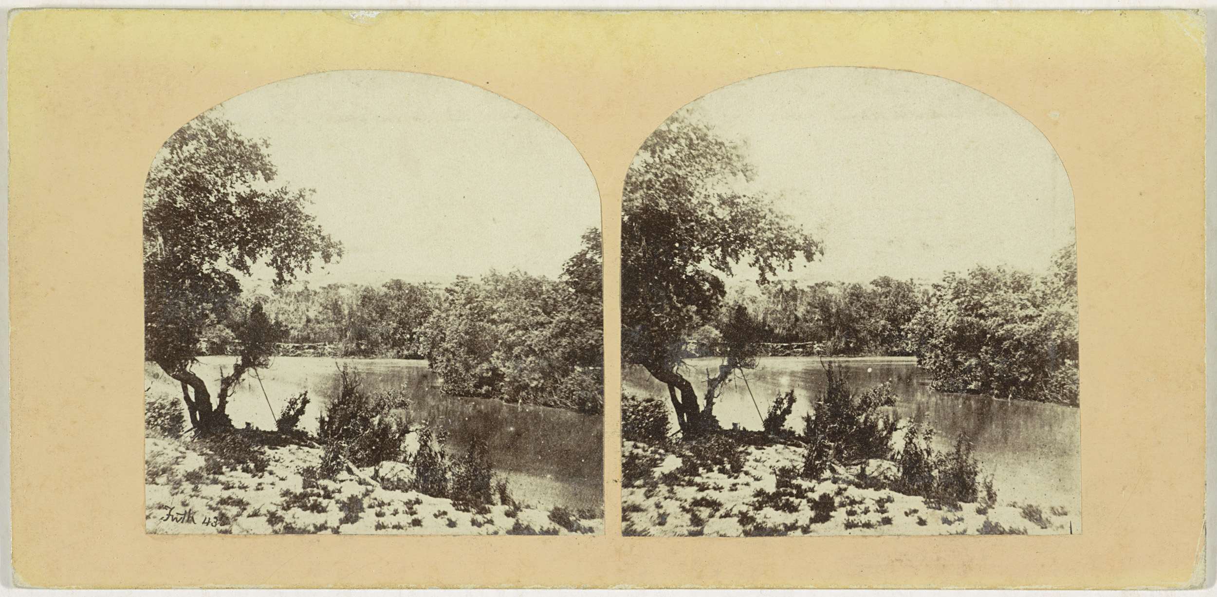Gezicht op de Jordaan vanaf de Westelijke Jordaanoever, Palestina