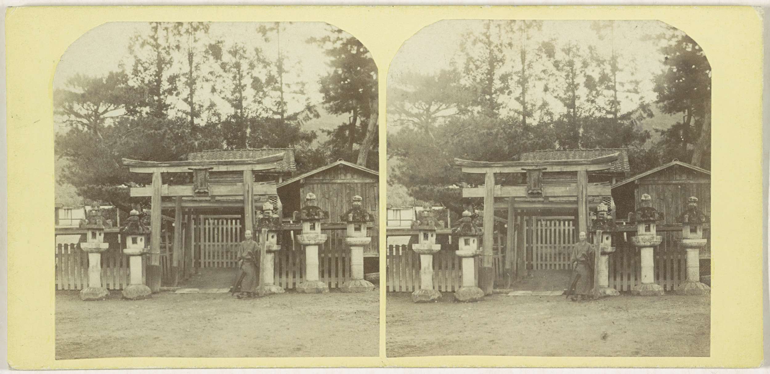 Entree van tempel of paleis met wacht, Japan