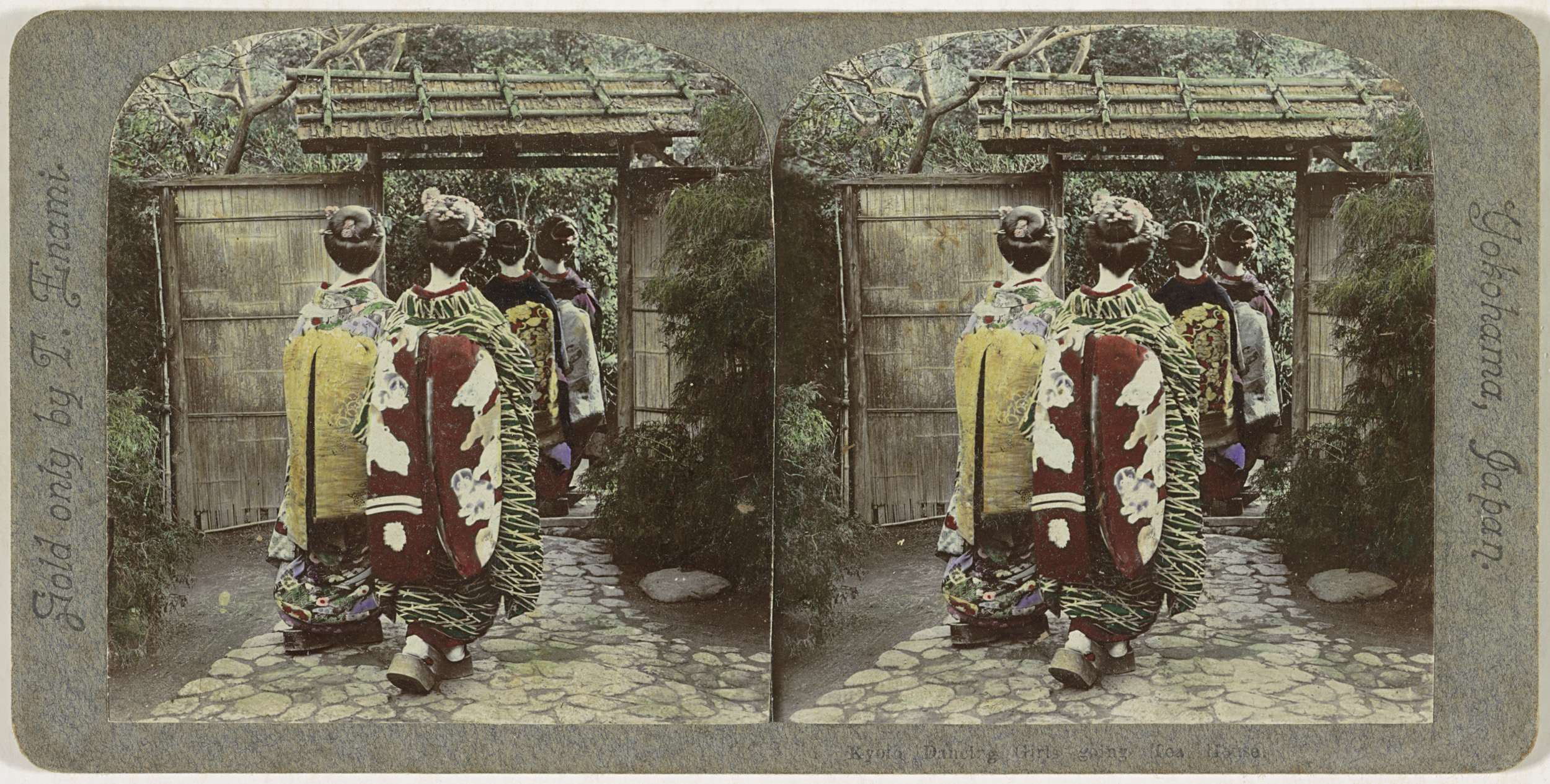 Japanse geisha's op weg naar een theehuis, Kioto