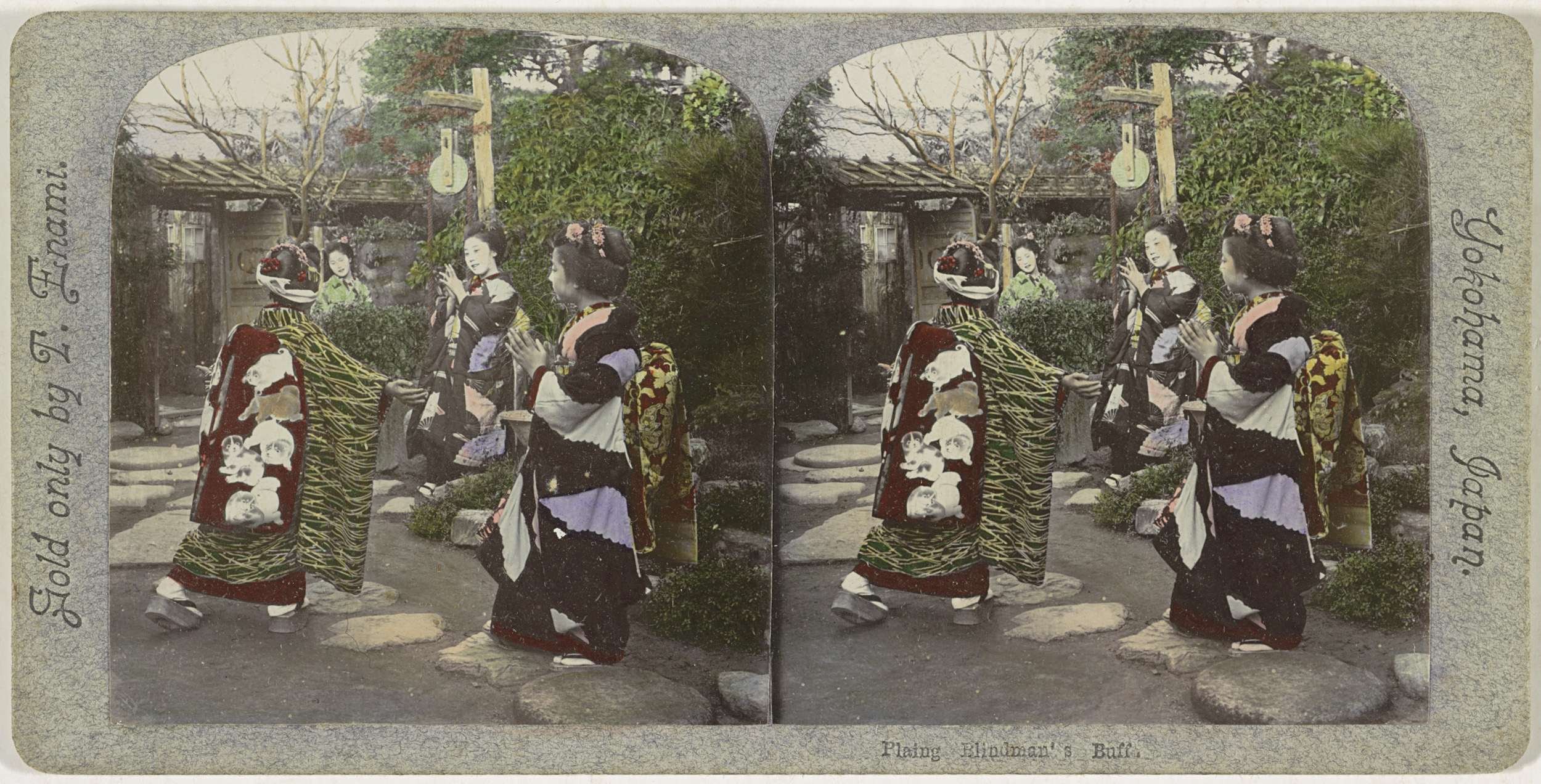 Japanse meisjes spelen een spel in een tuin