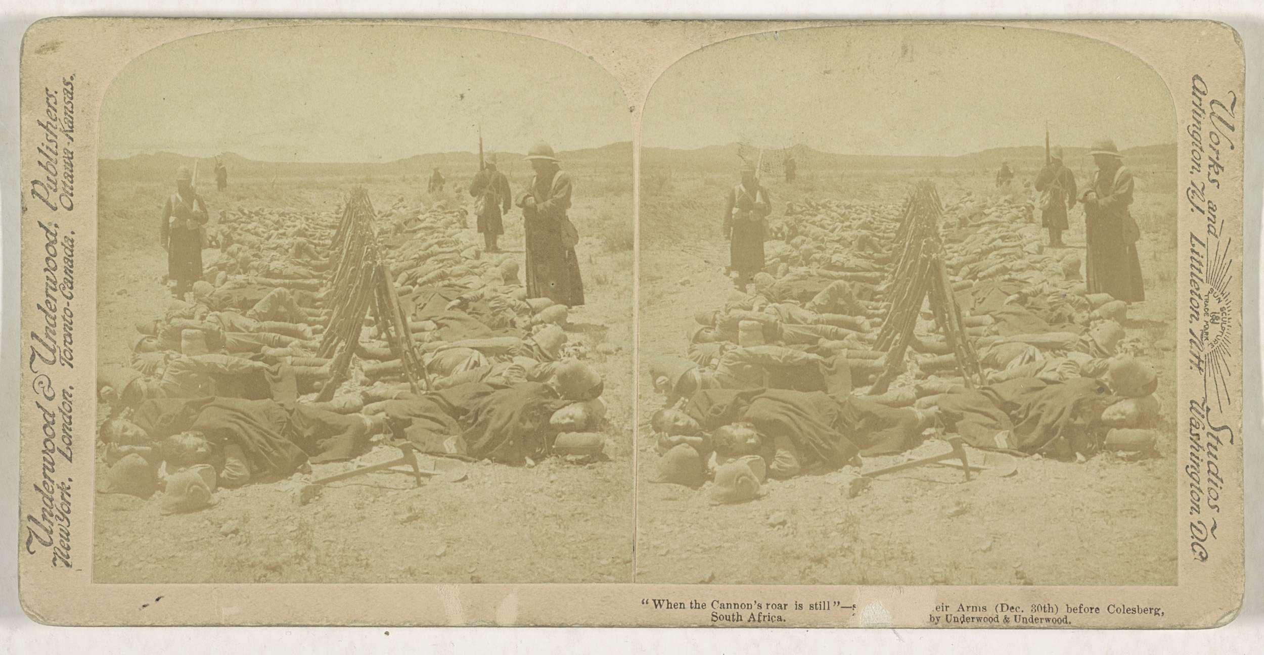 Britse soldaten slapen naast hun geweren nabij Colesberg, Zuid-Afrika