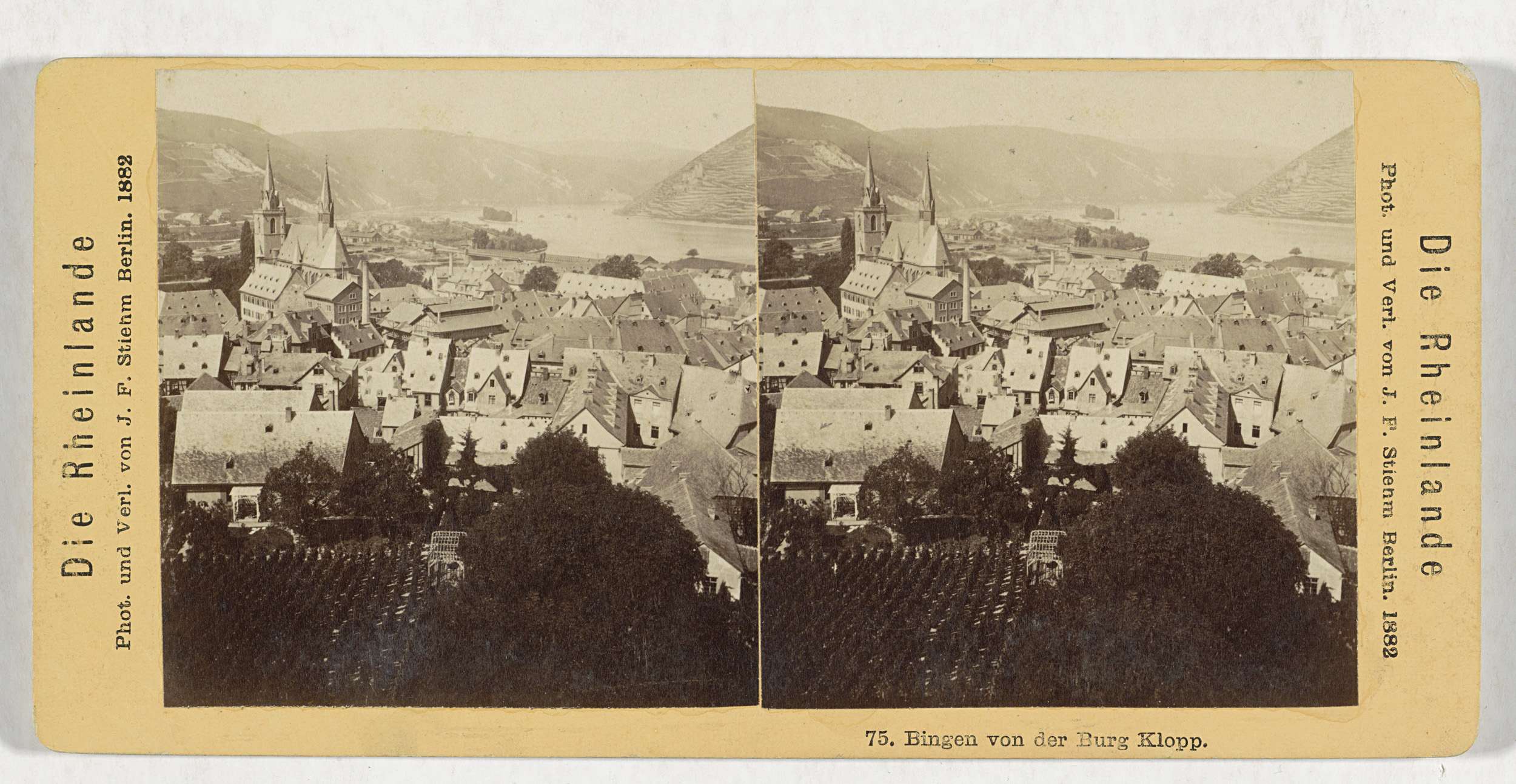 Gezicht op Bingen am Rhein, gezien vanaf burcht Klopp
